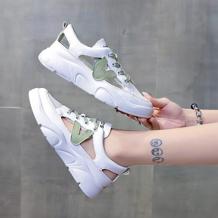 Корейская версия модных дышащих маленьких белых туфель для женщин 2024 года, летние новые круглые дышащие полые спортивные туфли с круглым носком, повседневные сандалии для женщин — купить товар онлайн с бесплатной доставкой по всему миру!