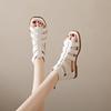 Импортные римские туфли женские новые полые сандалии с открытым носком молния сзади мягкая подошва мягкая поверхность плоские сандалии женские
