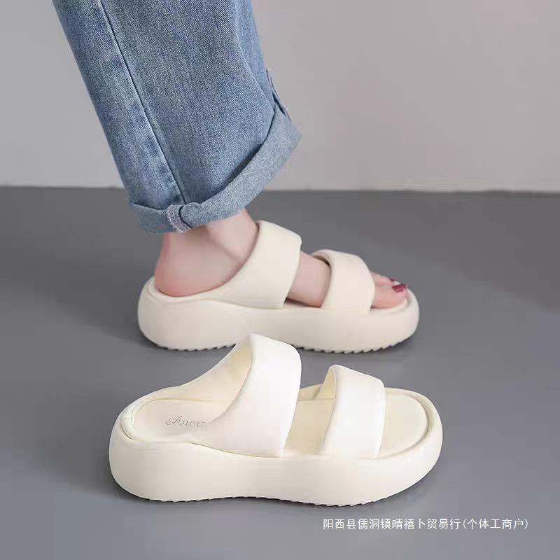 Green high-end cool slippers women's 2025 summer new fashionable versatile one-word drag soft-soled non-slip beach shoes