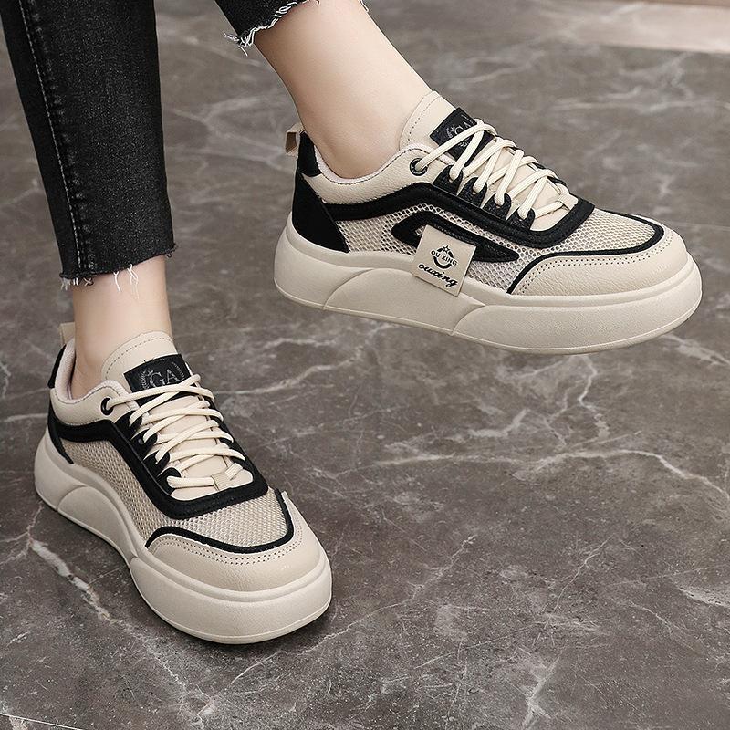 Летние новые маленькие белые туфли в корейском стиле, женские студенческие туфли на платформе, повседневные туфли из плетеной сетки, дышащие, спортивные туфли для сноуборда