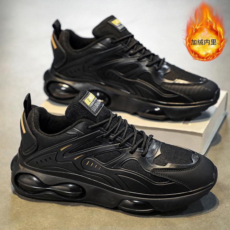 Мужская обувь 2024 года, новая зимняя бархатная утолщенная черная спортивная обувь из двух хлопков, молодежная воздушная подушка, амортизация, беговая обувь прилива
