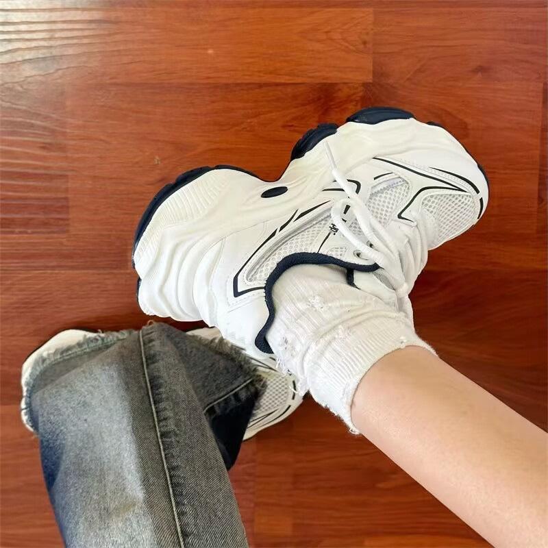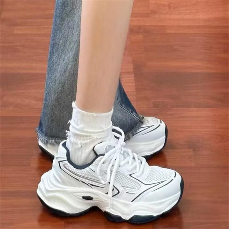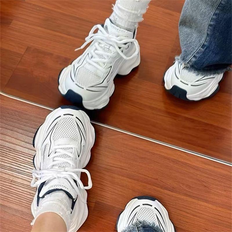 2025 новые повседневные спортивные туфли женские весна и осень белые универсальные туфли для папы на платформе популярные сетчатые дышащие туфли прилив