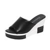 Сандалии импортного производства женские с толстой подошвой лето 2025 новые кексы на высоком каблуке однотонные танкетки удобные однотонные классные тапочки