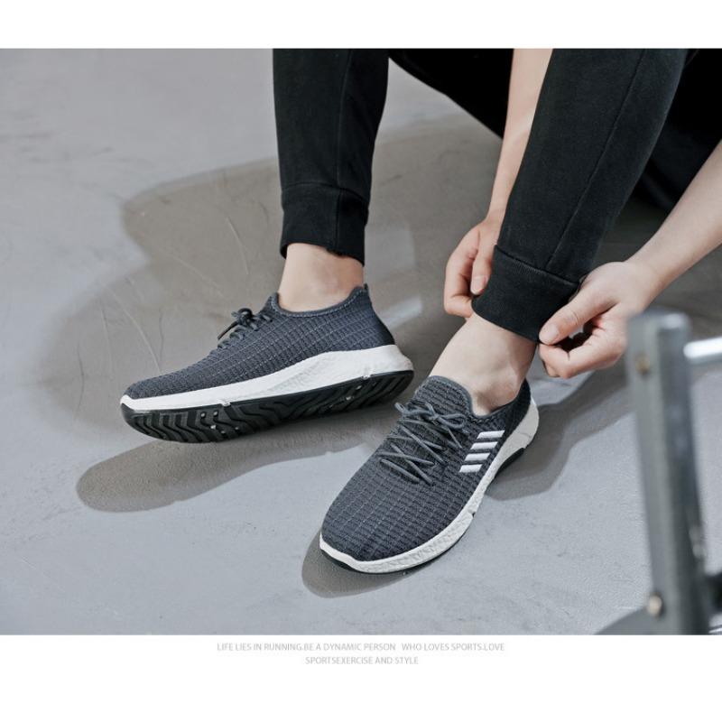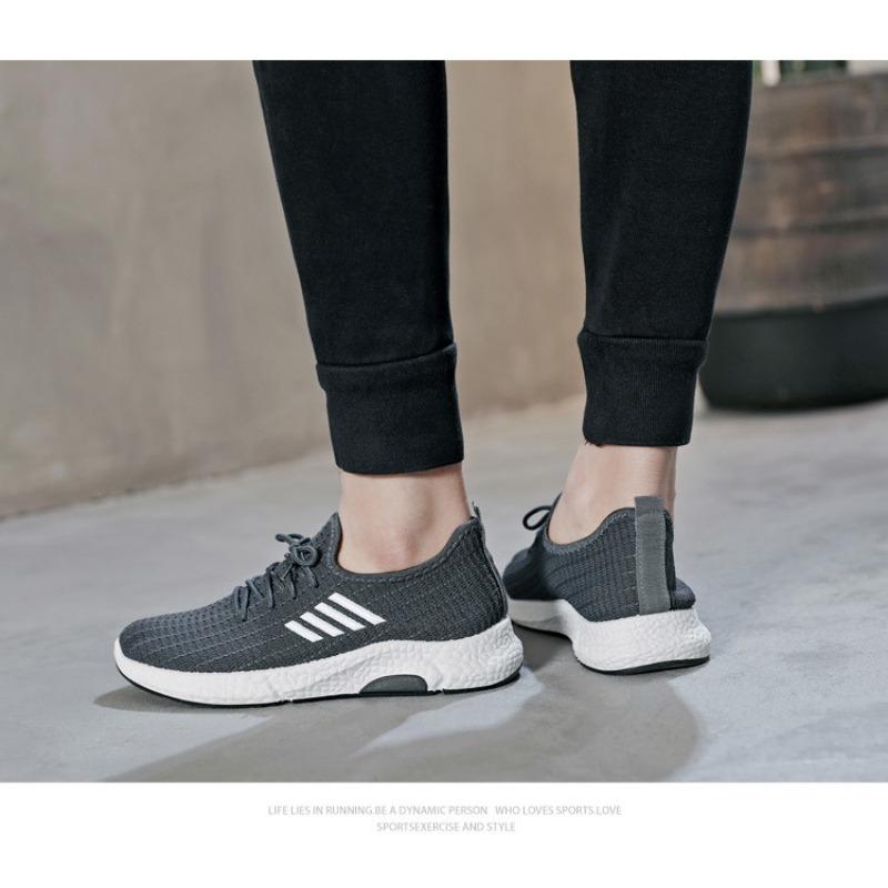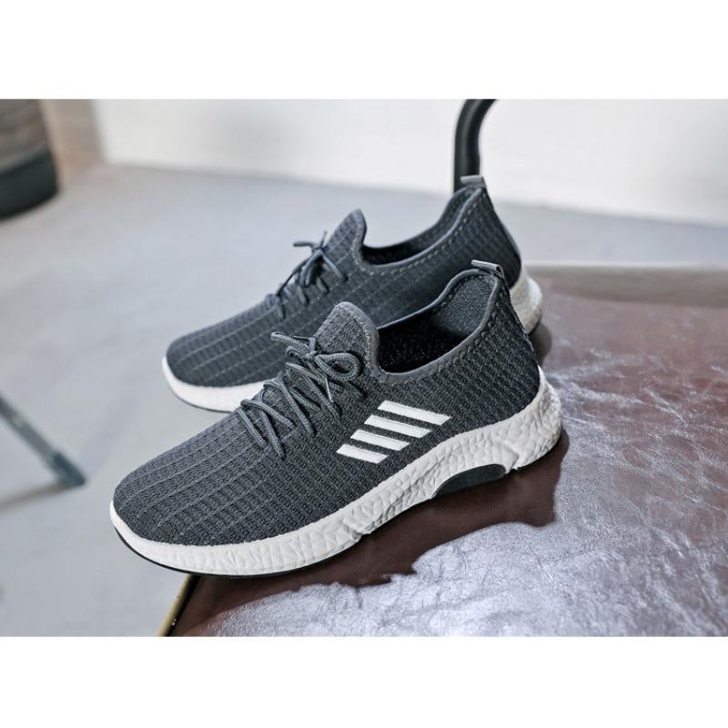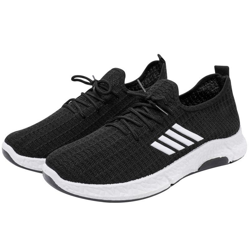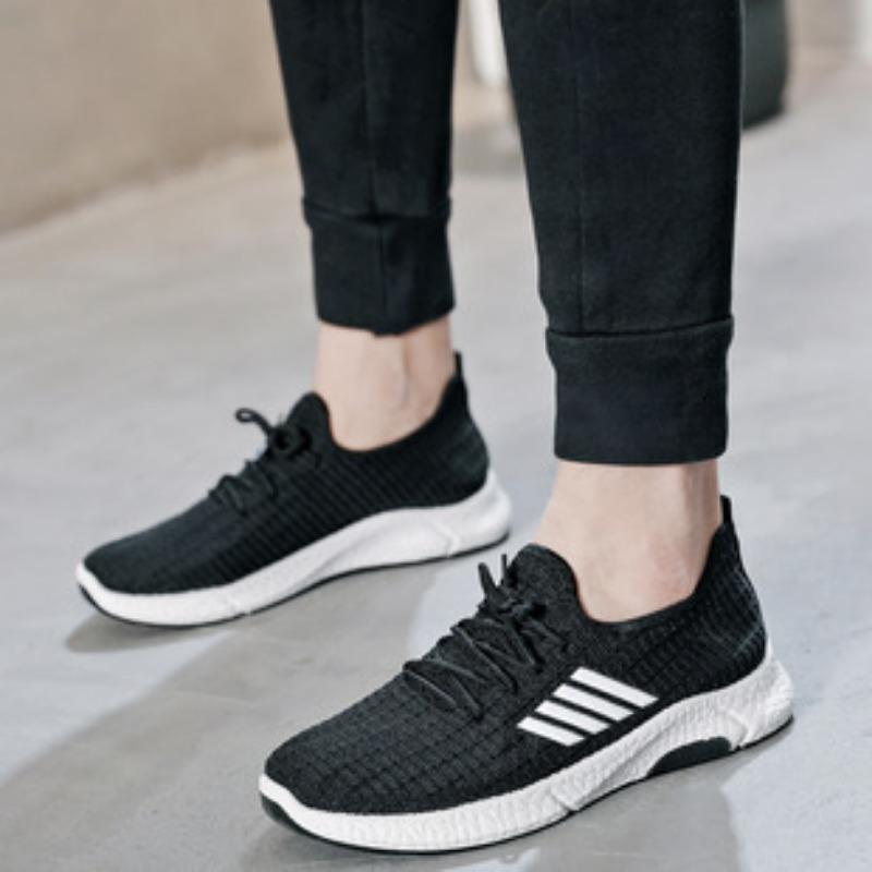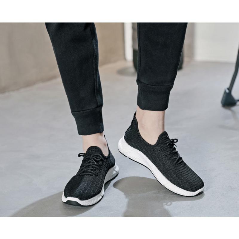 Мужские повседневные низкие черные спортивные туфли с круглым носком и четырьмя перемычками. Туфли из ткани Flyknit. Прогулочные туфли.