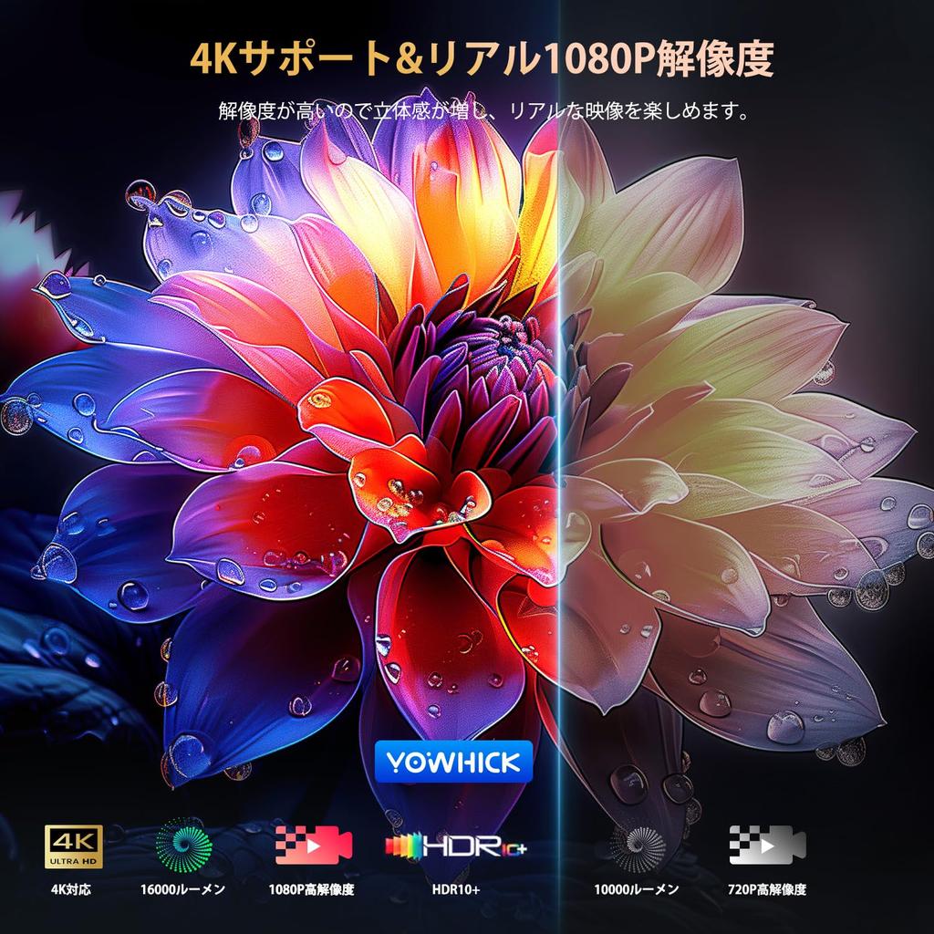 🎇【Высокая яркость 16000 лм, высокое разрешение 1080P, совместимость с 4K】Яркость домашнего проектора улучшена до 16000 люмен, собственное разрешение повышено до 1080P, охватывает более 95% цветовой гаммы NTSC, имеет высокую цветопередачу, а проецируемое изображение четкое и близкое к исходному цвету.. Проектор может проецировать изображение непосредственно на белую стену без экрана, воспроизводя детализированные цвета естественным образом, позволяя вам наслаждаться прекрасными изображениями.. Увеличьте превосходные 10000:Коэффициент контрастности 1. Вы также можете использовать его как источник 4K и наслаждаться прекрасным воспроизведением.. Идеально подходит для домашних кинотеатров и просмотра спортивных состязаний, позволяя наслаждаться высококачественным изображением даже дома.