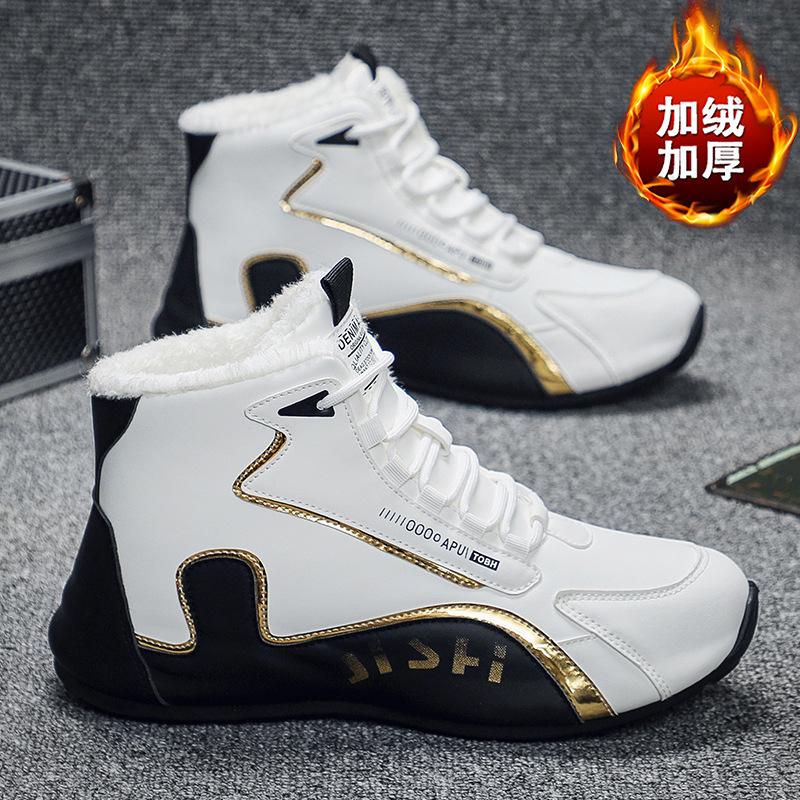 2024 зима новые бархатные мужские туфли утолщенные теплые модные мужские повседневные туфли корейская версия трендовые высокие спортивные туфли