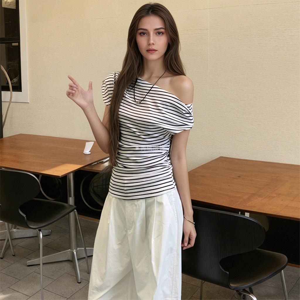 Женская летняя футболка Spice Girls в полоску с косым вырезом и короткими рукавами, облегающая, с открытыми плечами — купить товар онлайн с бесплатной доставкой по всему миру!