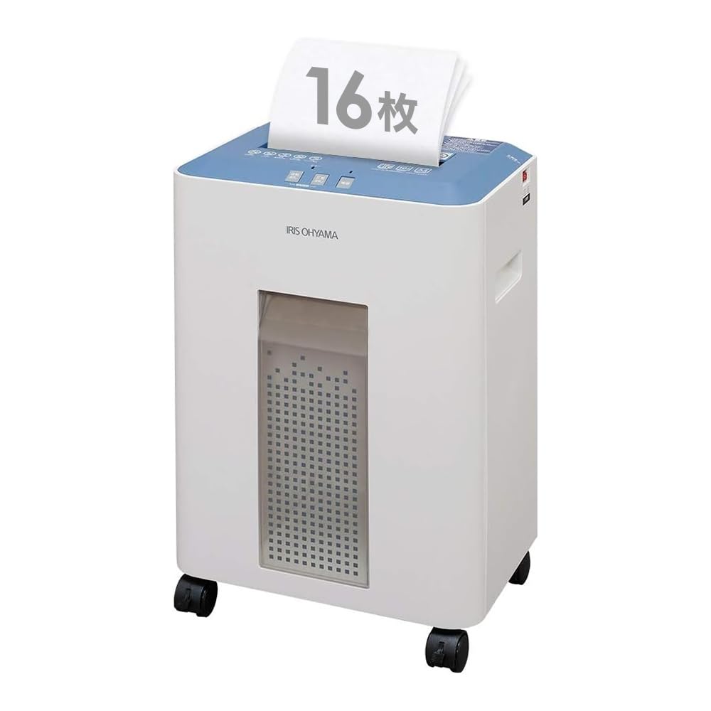 IRIS OHYAMA Уничтожитель документов для коммерческого использования, высокая производительность, 16-кратный перекрестный степлер, непрерывная работа в течение 10 минут, совместим с пылесборником, вмещает листы OF16J, синего цвета, тихий,