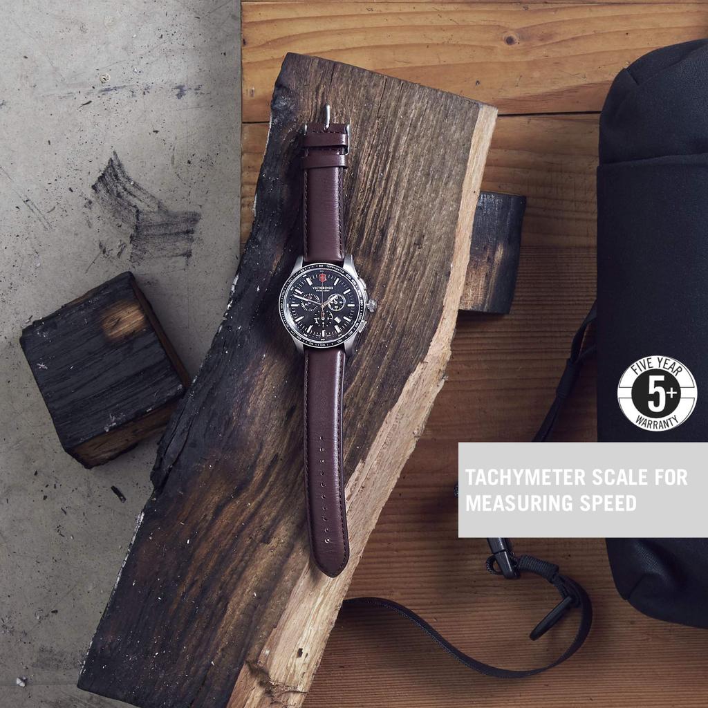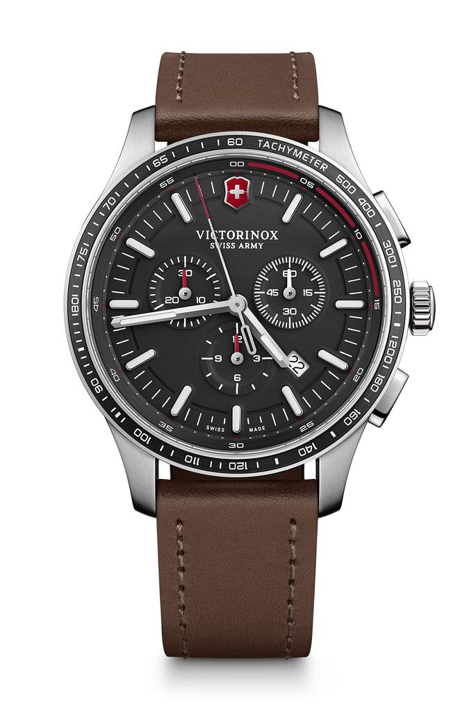 Часы ALLIANCE SPORT CHRONOGRAPH Корпус из нержавеющей стали Черный циферблат Коричневый кожаный ремешок Подарок 241826 [Victorinox] (316L/Кованый) [