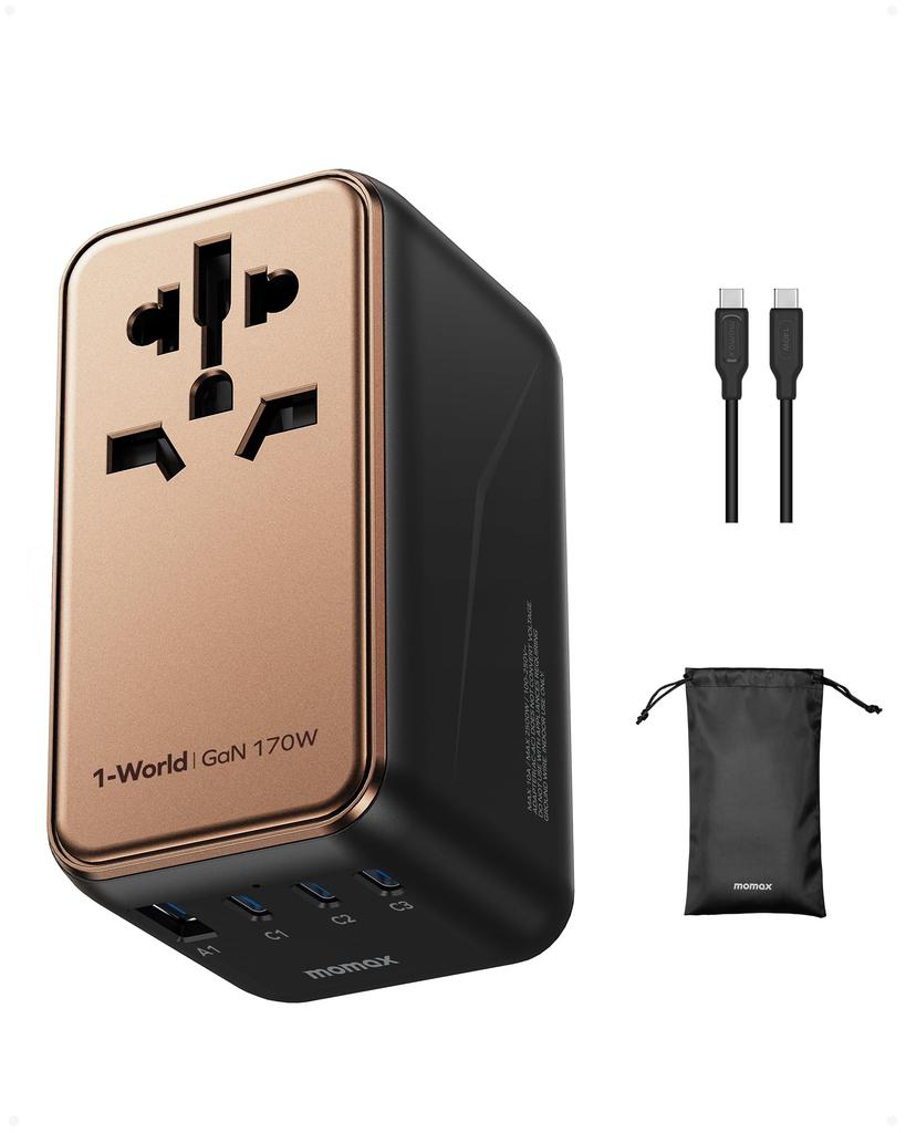 [Сверхбыстрая выходная мощность 170 Вт и передовая технология GaN] Переходник MOMAX для международных поездок — самый быстрый адаптер для международных поездок на рынке. При использовании одного порта USB-C3/C2 имеет максимальную выходную мощность PD140 Вт.. Поддерживает выходную мощность 140 Вт и 30 Вт при одновременной зарядке двух устройств.. Вы можете заряжать два ноутбука одновременно. Передовая технология GaN от MOMAX позволяет сжать этот преобразовательный адаптер до невероятно компактных размеров. (93 х 55 х 53 мм) и легкий вес (268g), что также обеспечивает более быструю зарядку и более низкие температуры. Наслаждайтесь поездкой, не тратя много времени на зарядку!