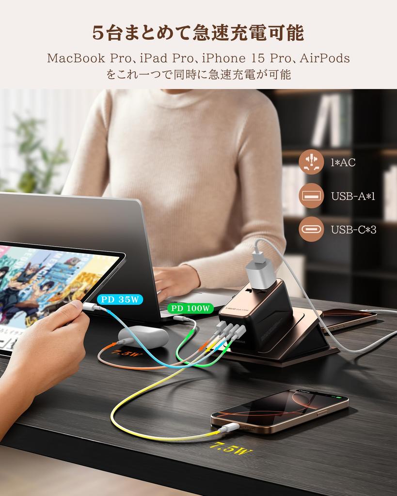 [Удобно носить с собой и использовать в путешествиях и командировках] Основной корпус интегрирован, поэтому он не развалится, как собранная модель. Компактный и легкий, удобный для переноски. Кроме того, когда штепсельная часть не используется, она хранится отдельно и не мешает.. Для зарядки USB-устройств вам даже не понадобится дополнительное USB-зарядное устройство, так как оно оснащено 3 портами USB-C и 1 USB-A.. Заряжайте до 5 устройств одновременно. Подходит для заграничных путешествий, деловых поездок, обучения и т. д.. [140 Вт USB-C-кабель *1 и сумка для хранения *1 в комплекте]