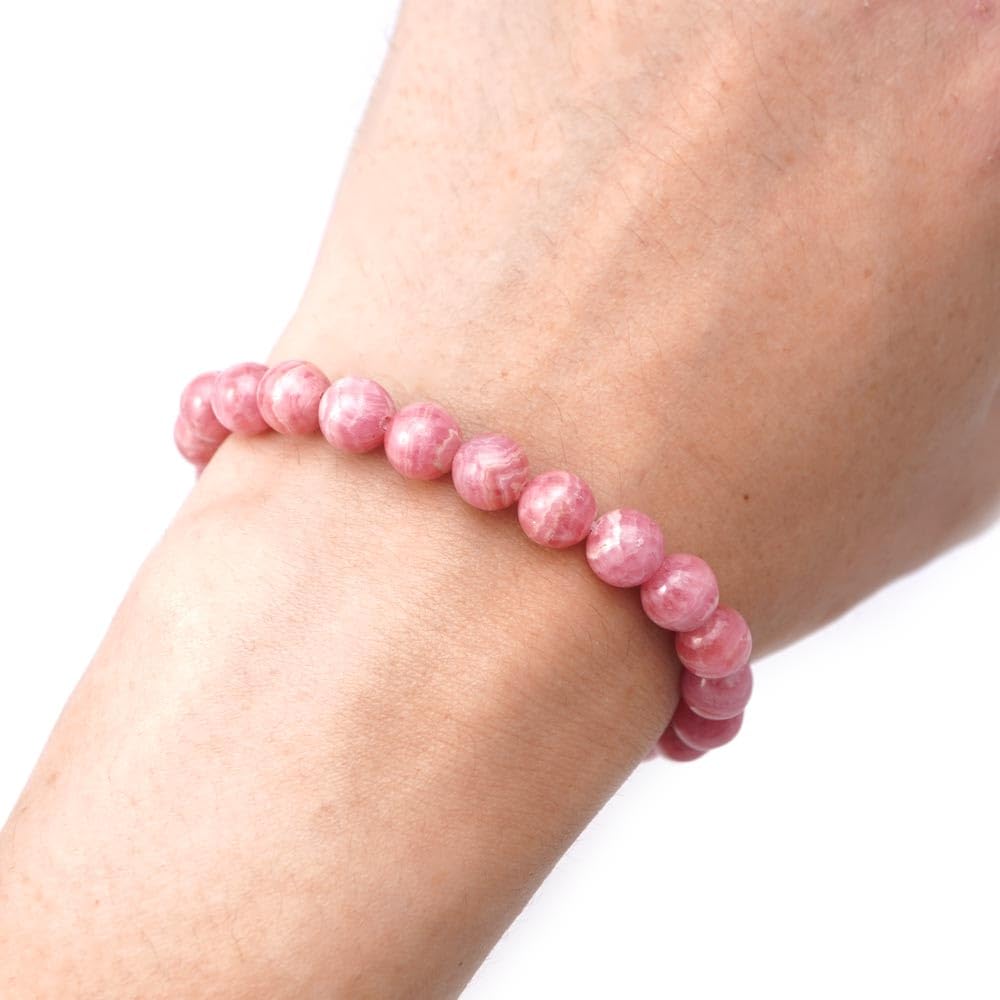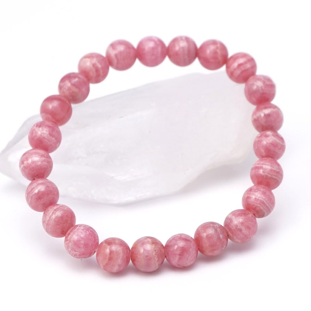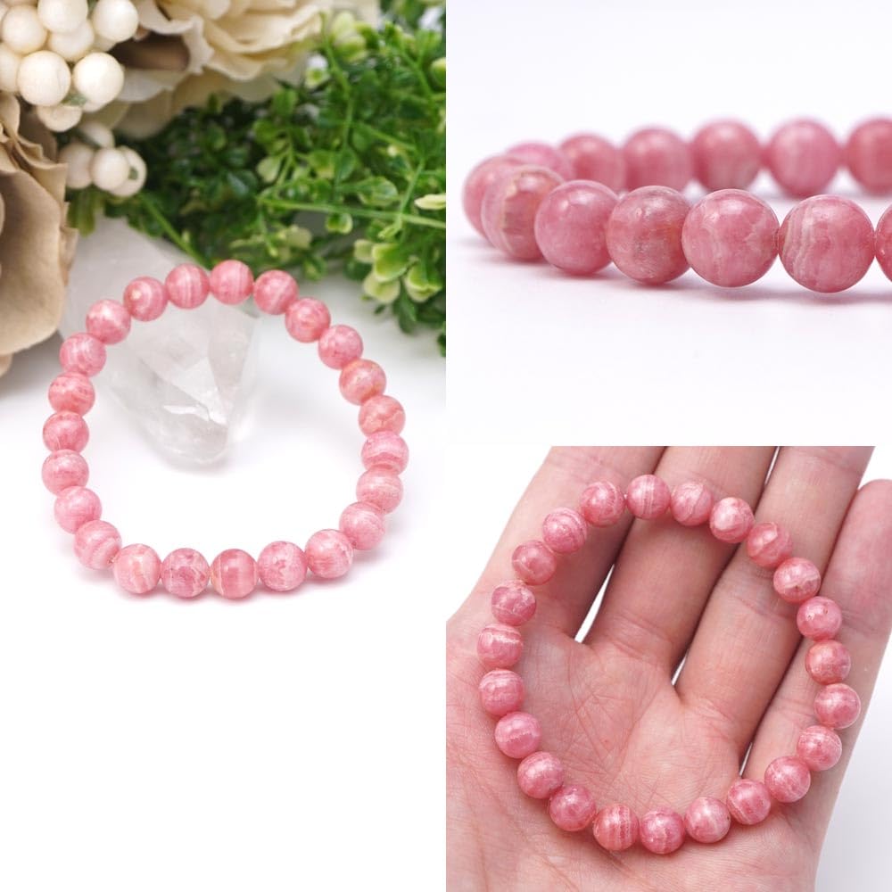 Браслет из родохрозита 8 мм круглый шарик, внутренний обхват 16 см, роза инков, камень любви, натуральный камень, камень силы, четки для молитвы, подарок, 8 мм прибл.