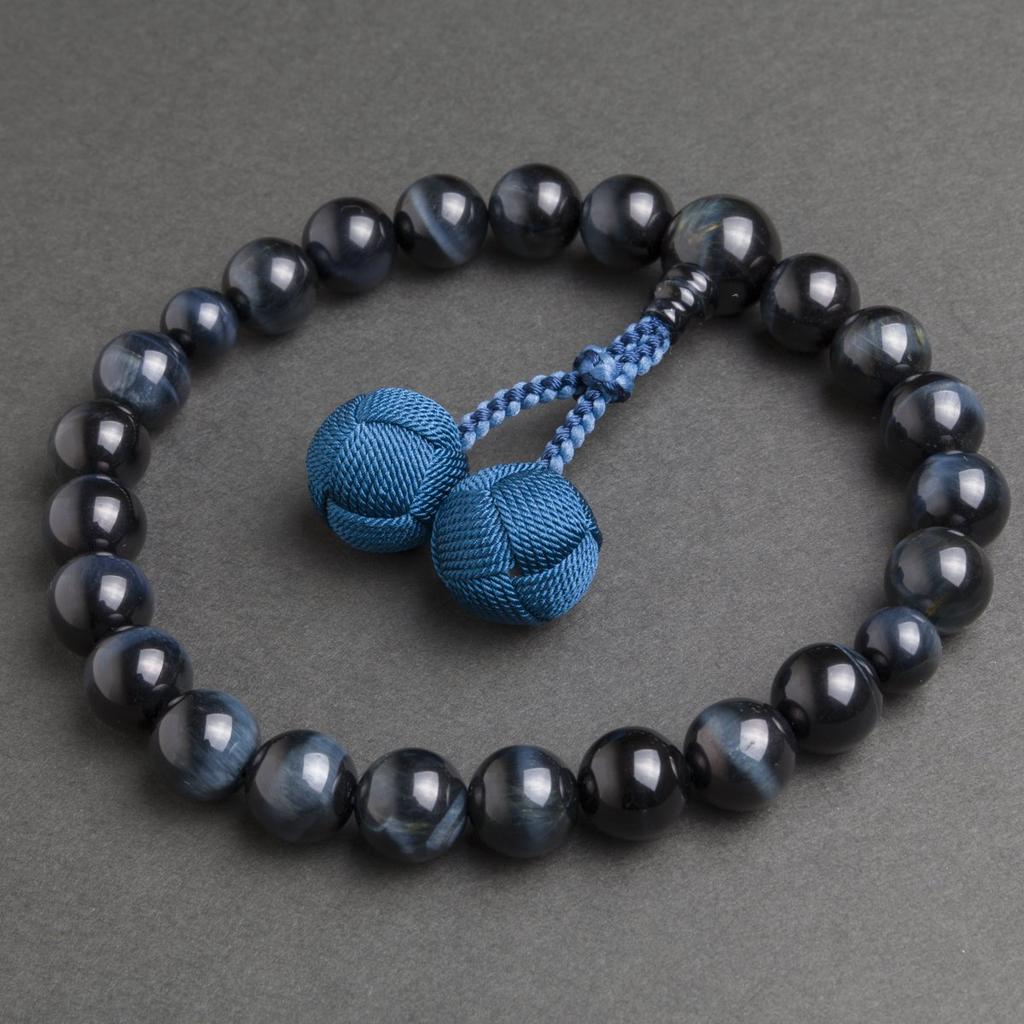 Эти четки для мужчин изготовлены из синего тигрового глаза — высококачественного натурального камня, имеющего глубокий синий цвет, похожий на черный, с уникальным узором в виде синих полос.