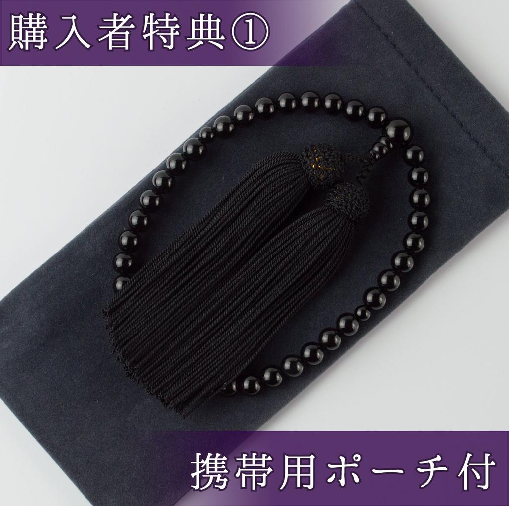 Похоронные четки из черного оникса Сато для женщин. Могут использоваться представителями всех конфессий. Сделаны в Киото с ношением вместе с четками для молитвы. Бусина года сна.