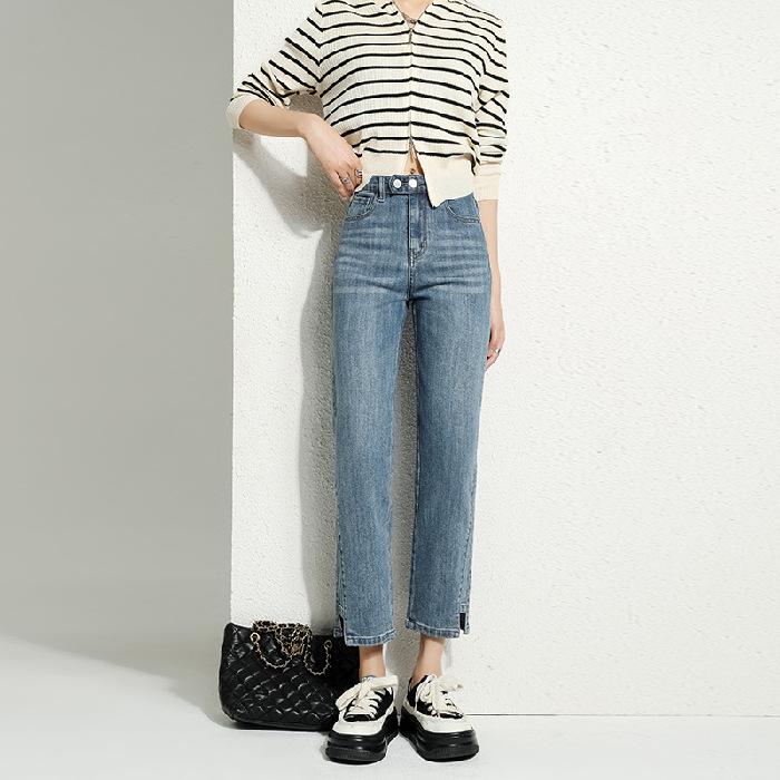 Прямые джинсы для женщин на осень и зиму с высокой посадкой, облегающие и свободные брюки-клёш для женщин на осень, брюки длиной девять десятых для женщин на осень — купить товар онлайн с бесплатной доставкой по всему миру!