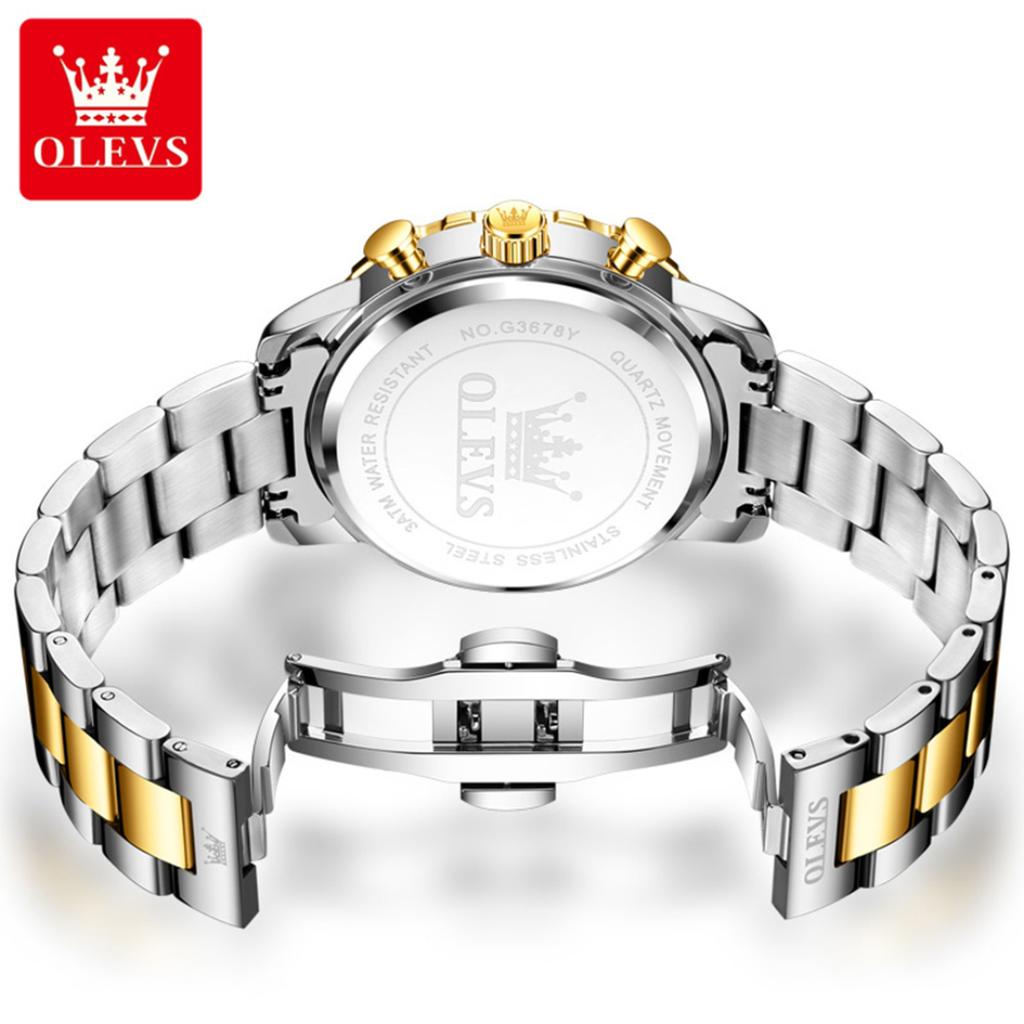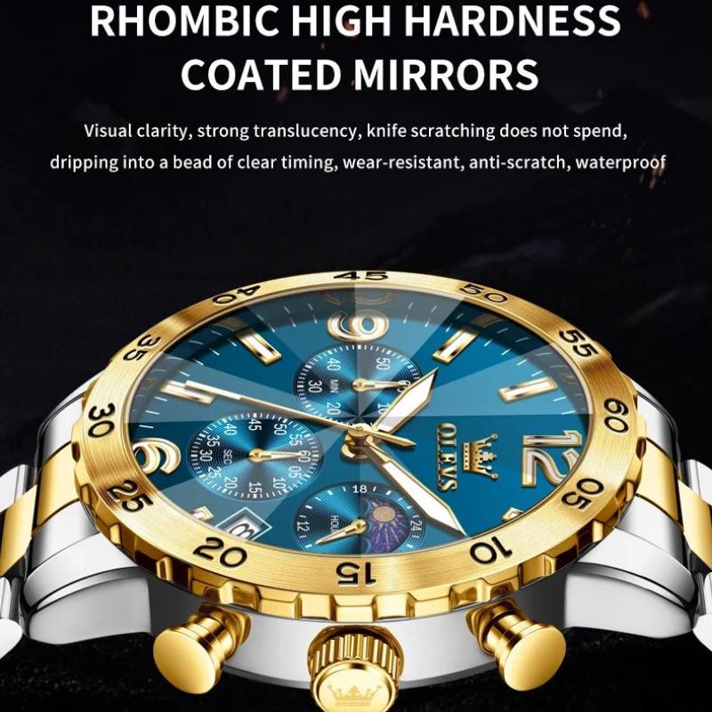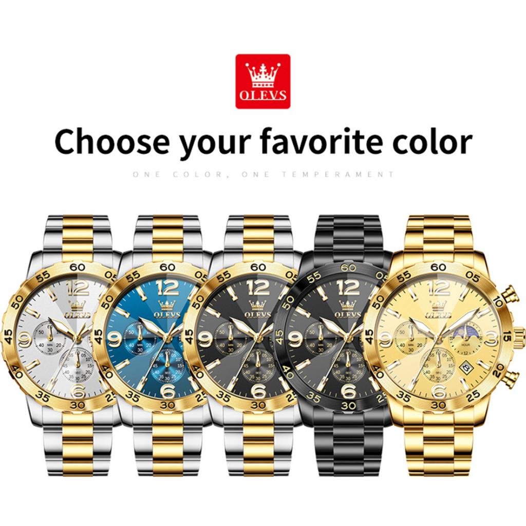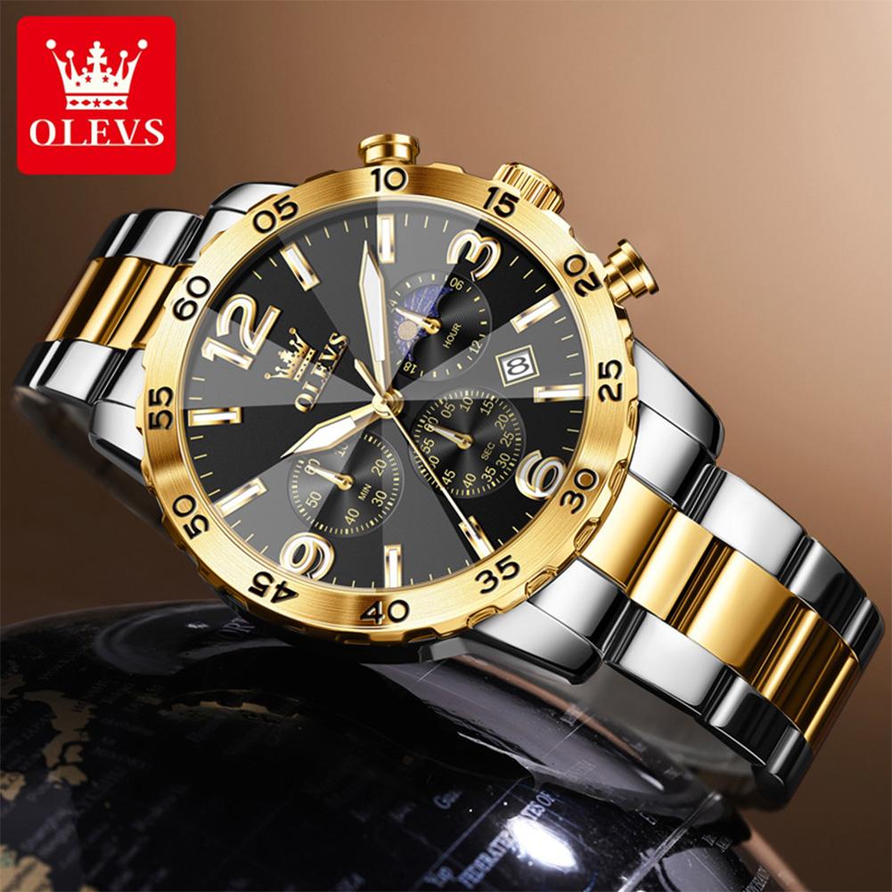 OLEVS Мужские часы класса люкс, кварцевые часы, многофункциональные водонепроницаемые, с фазой Луны, хронограф, оригинальные мужские наручные часы