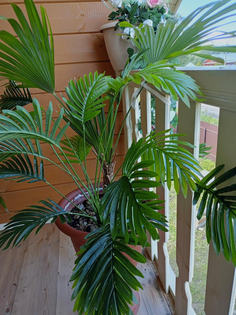 Пальма просто огонь, по своим размерам очень пашная, смотрится великолепно! Мне очень понравилась , советую к приобретению. Немного есть химозный запах , но думаю быстро выветрица.