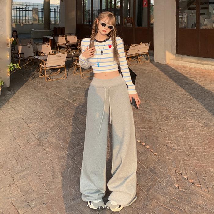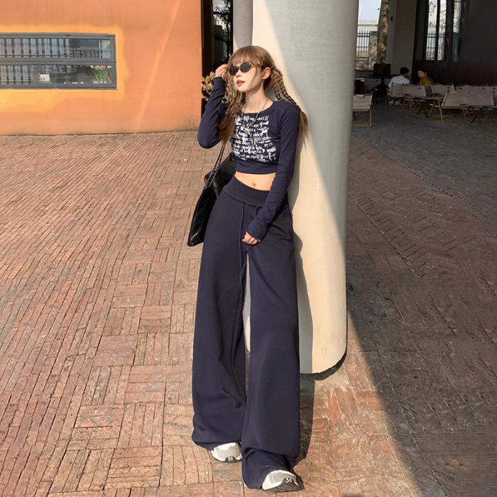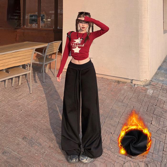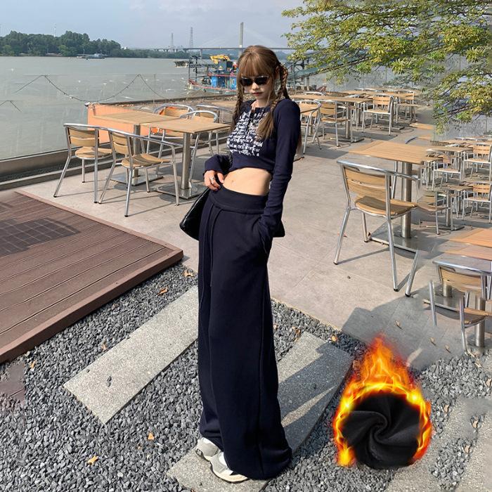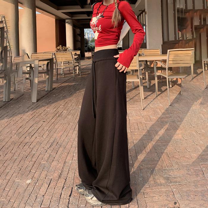 Свободные узкие брюки с высокой талией для женщин на осень и зиму Повседневные брюки с широкими штанинами и завязками для женщин на осень и зиму