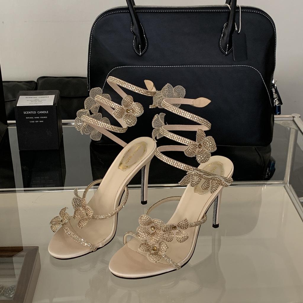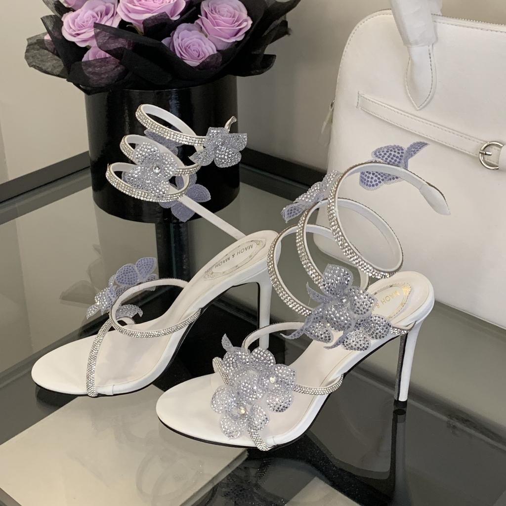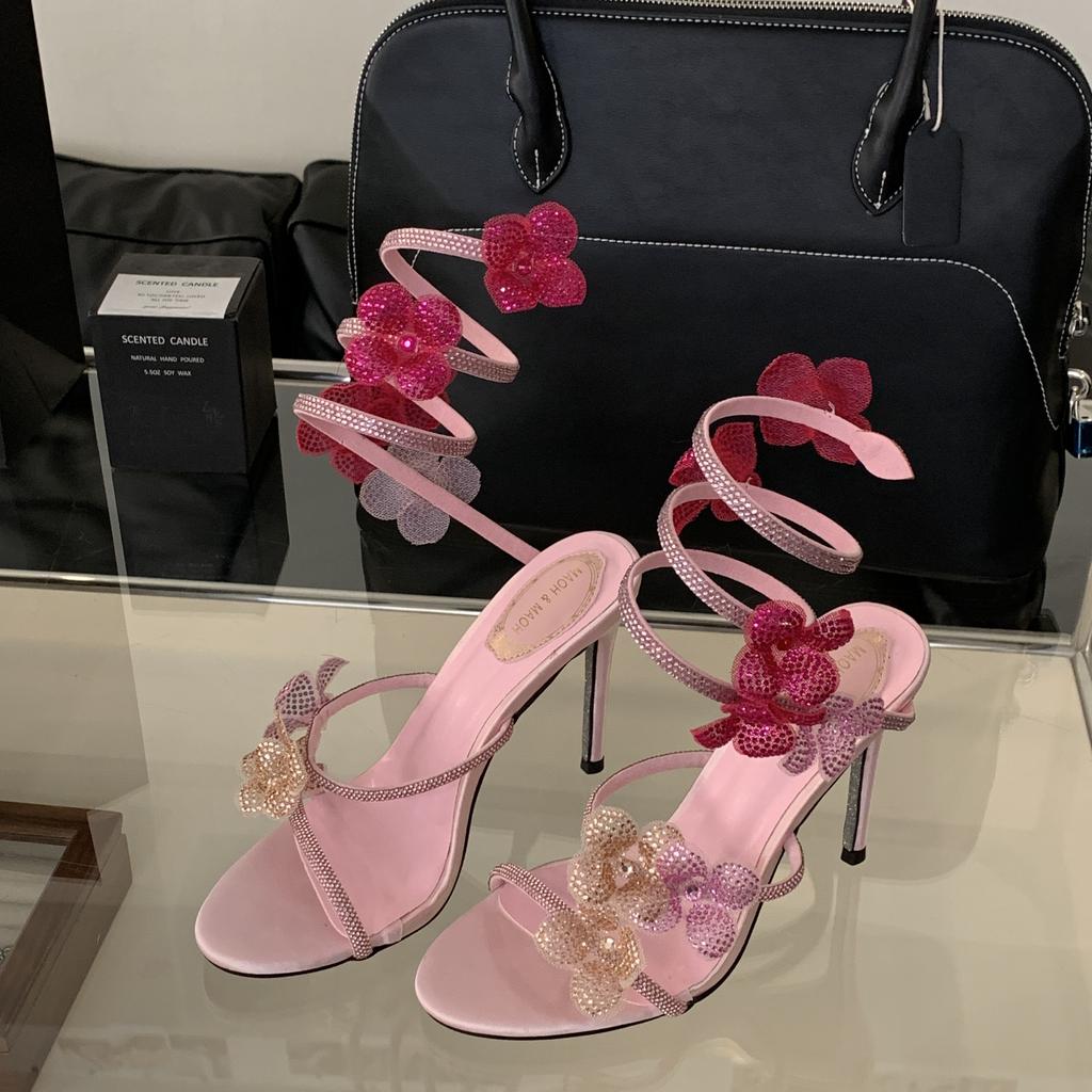 Летние модные женские туфли-лодочки, модные босоножки на высоком каблуке со стразами и цветочным принтом, женские свадебные туфли