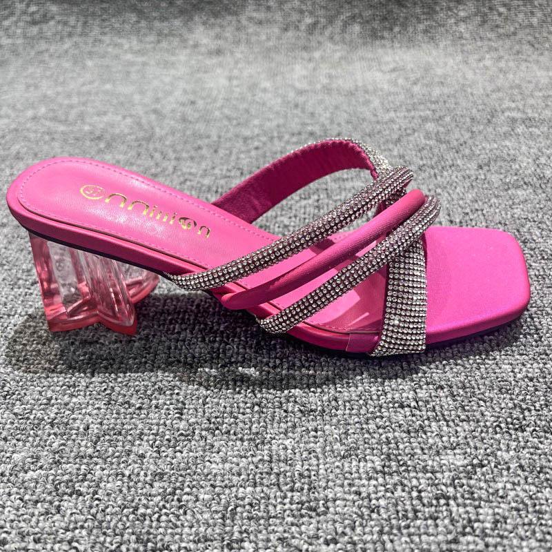 Xibeilove Новые женские тапочки с квадратной головкой, стразами и кристаллами на высоком каблуке, тапочки для внешнего ношения