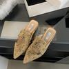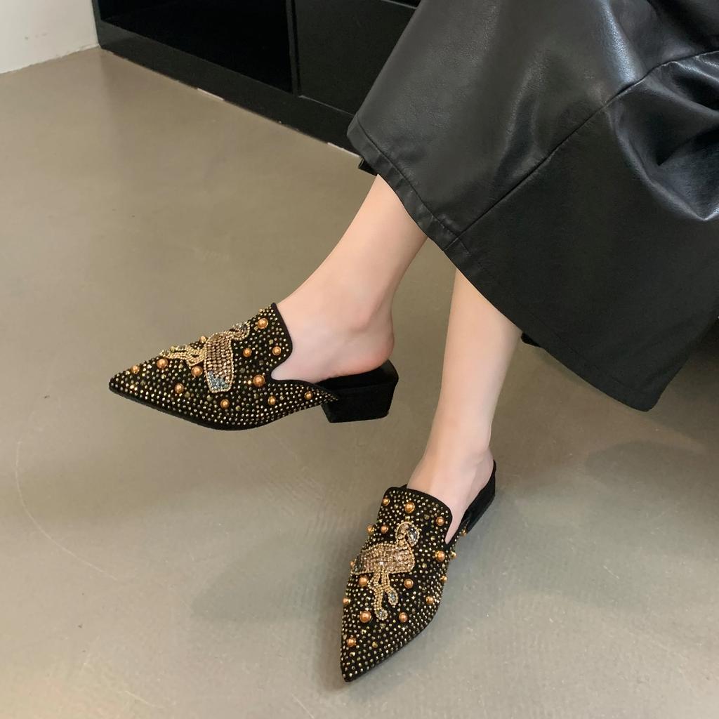 Осенние модные женские тапочки на среднем каблуке с острым носком, замшевые, со стразами, заклепками, тапочки на толстом каблуке, верхняя обувь — купить товар онлайн с бесплатной доставкой по всему миру!
