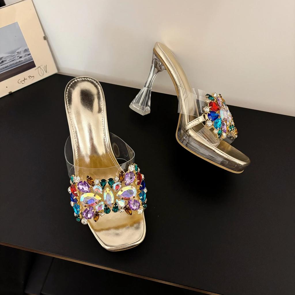 Летняя мода Женские водонепроницаемые туфли на платформе с цветными стразами и кристаллами на каблуке, шлепанцы на высоком каблуке, женская обувь для вечеринок и танцев