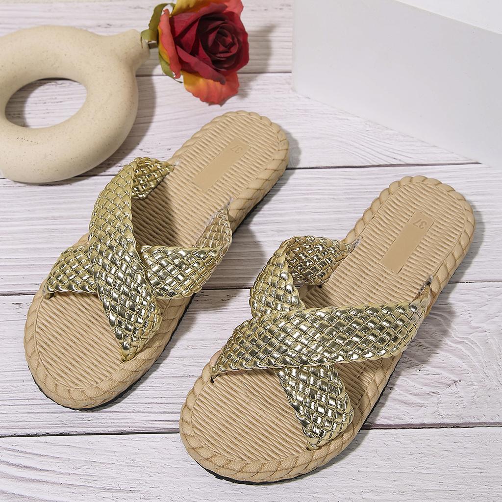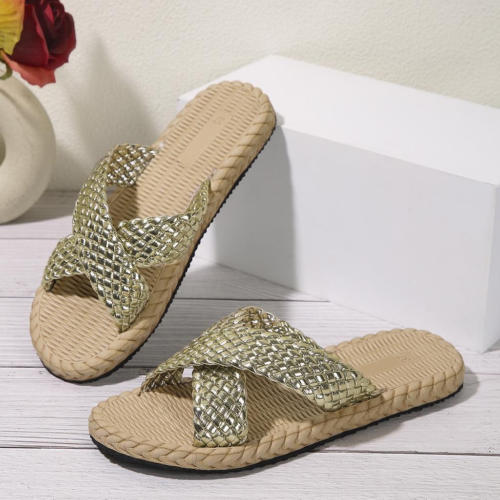 Женские тапочки Новые летние сандалии с перекрещенными ремешками Пляжные тапочки из пеньковой веревки Роскошная дизайнерская модная обувь для женщин Шлепанцы женские