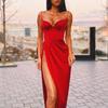 Весенне-летнее однотонное платье с разрезом на подтяжках для женщин, модное, персикового цвета, с вырезом, сексуальное, облегающее платье