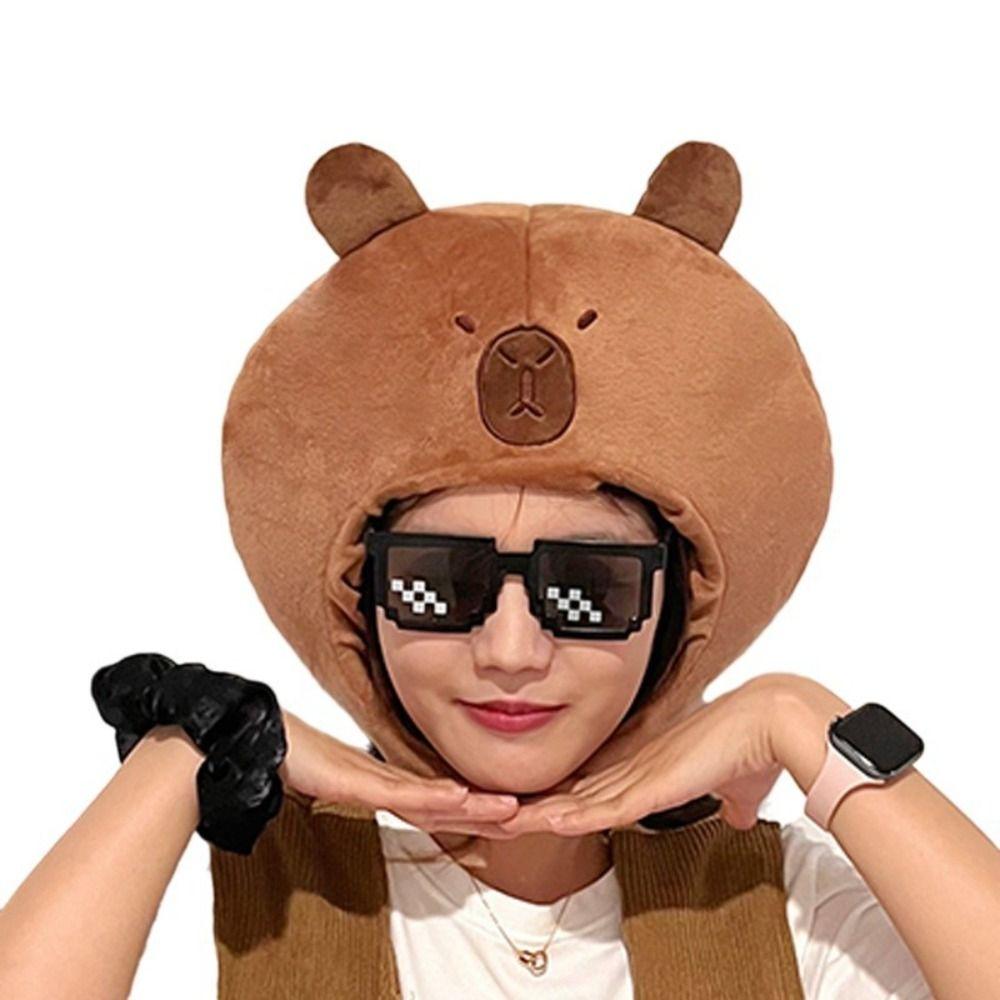 Плюшевый головной убор капибары, милая плюшевая кукла капибары, зимние шапки, плюшевая шапка капибары, дети