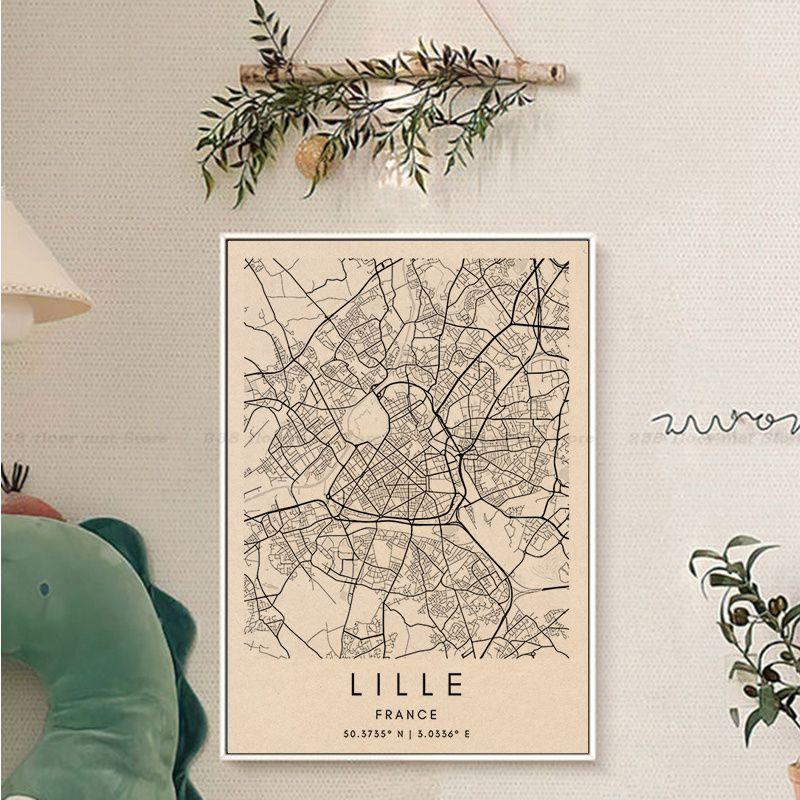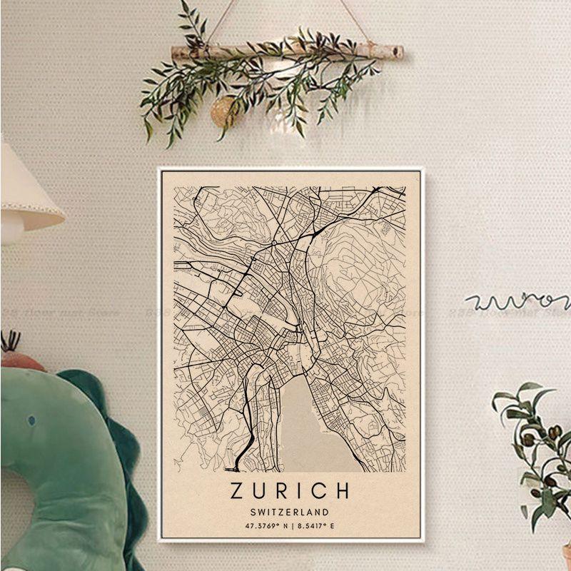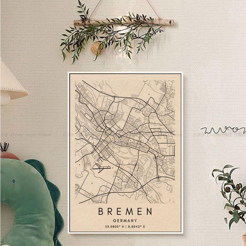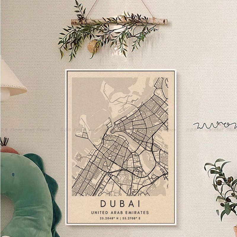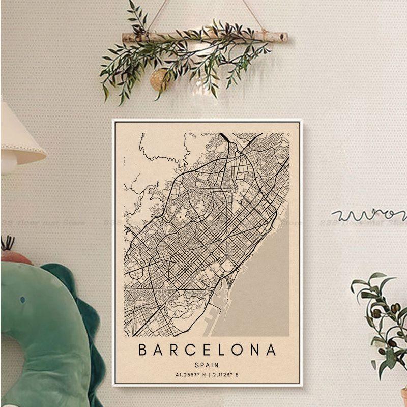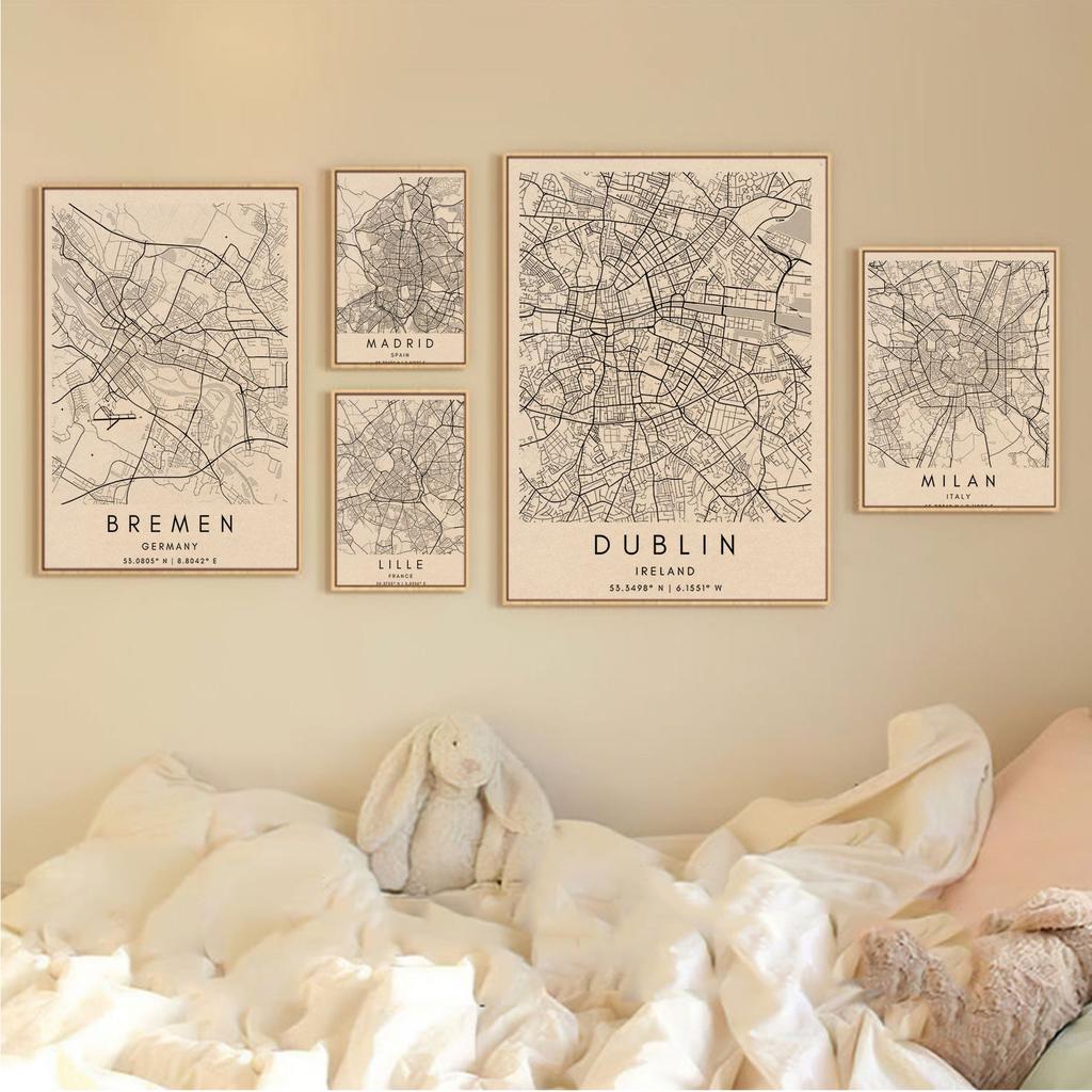 Дублин Париж Лондон Нью-Йорк Пользовательская карта города Классические постеры фильмов Наклейка из крафт-бумаги Домашний бар Кафе Декор для стен комнаты
