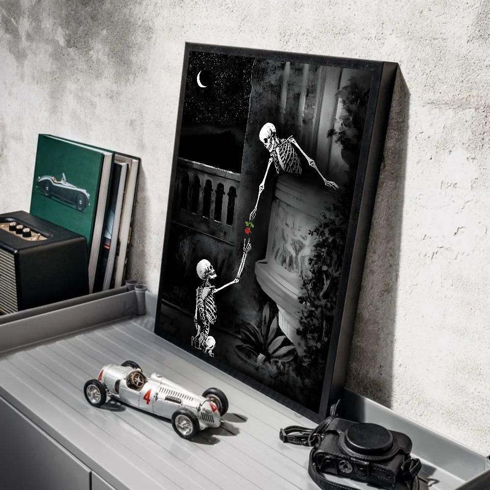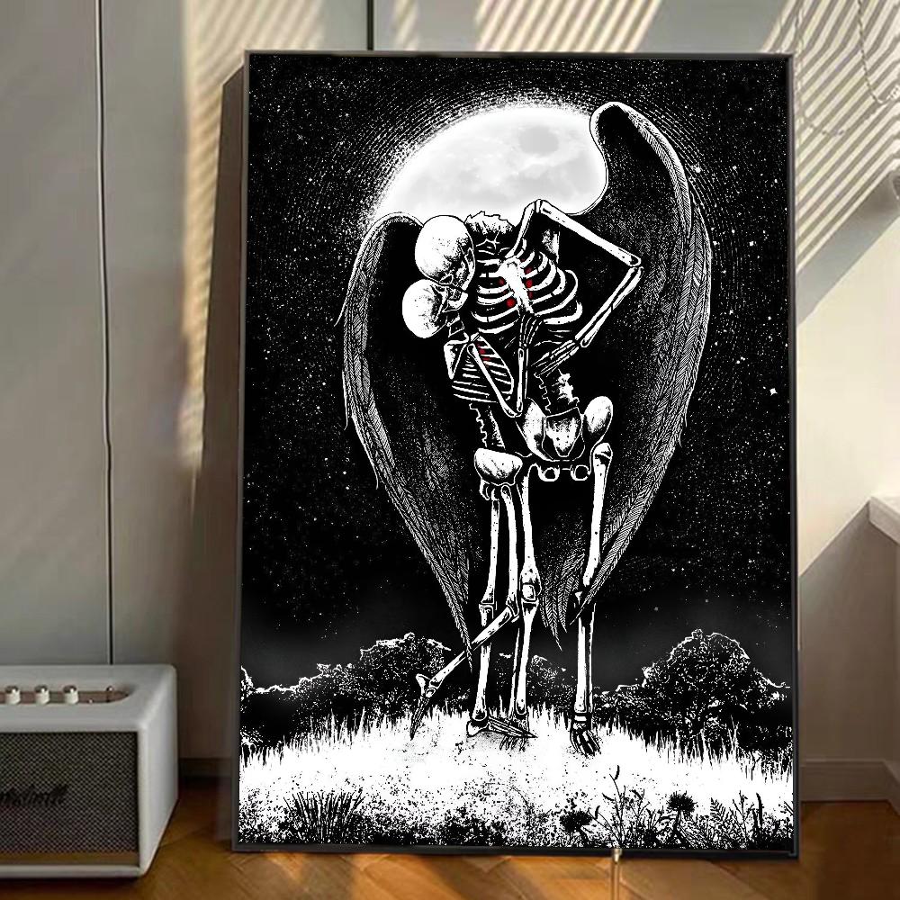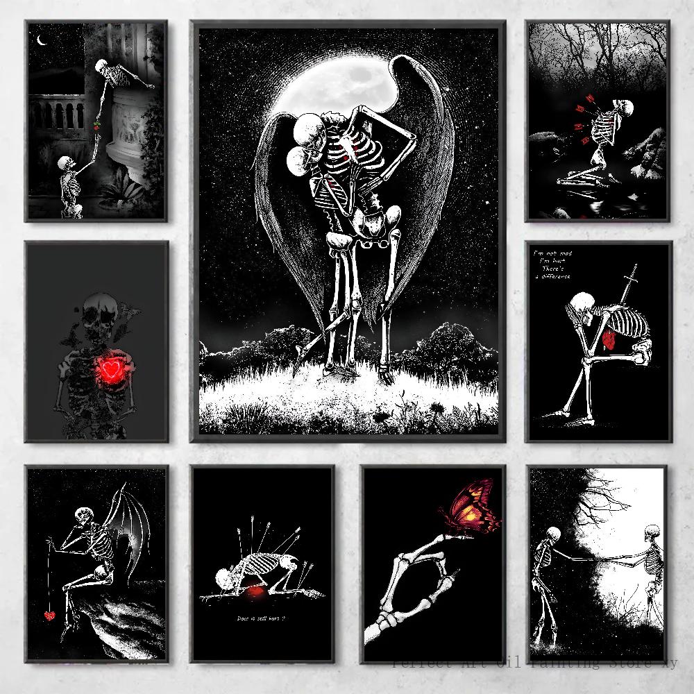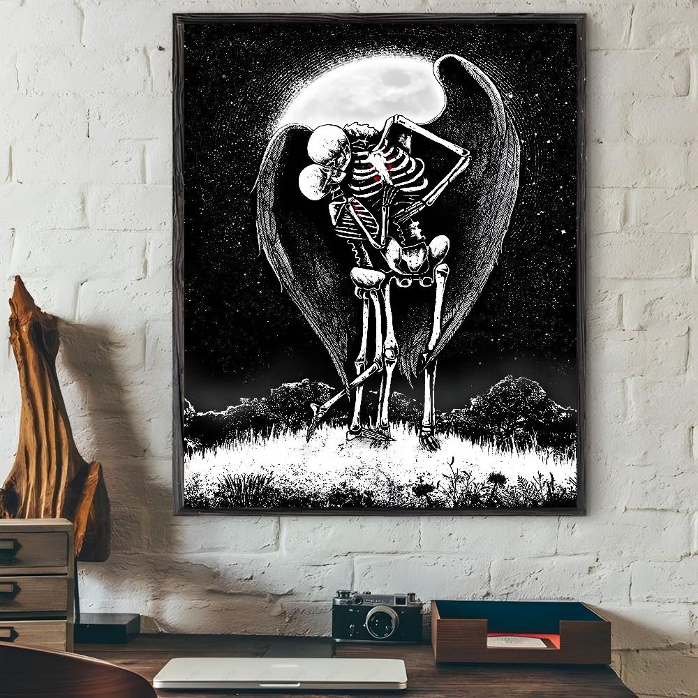 1 шт. Простой Череп Любовь Женатые Влюбленные Плакат Наклейки Искусство Настенные Росписи Декор Игровая Комната Декор Подарки Каваи HD Картина Кошки Машины