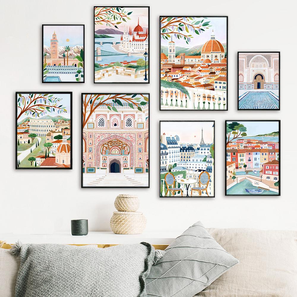 Северный туристический городской плакат Итальянский Париж Рим Марракеш Пейзаж Искусство Картина на холсте Подарок на новоселье Настенные картины Домашний декор