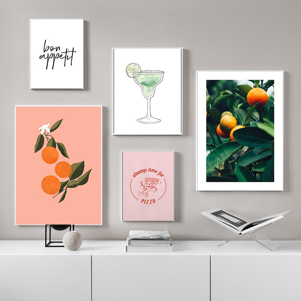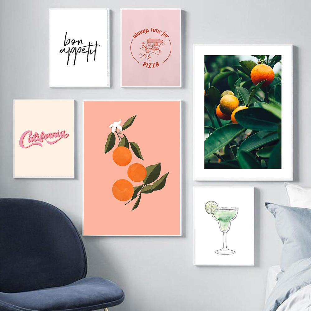 Фруктовый плакат Винтаж Апельсин Груша Лимон Настенное искусство Приятного аппетита Цитата Картина на холсте Домашнее украшение Кухня Настенное искусство Картины
