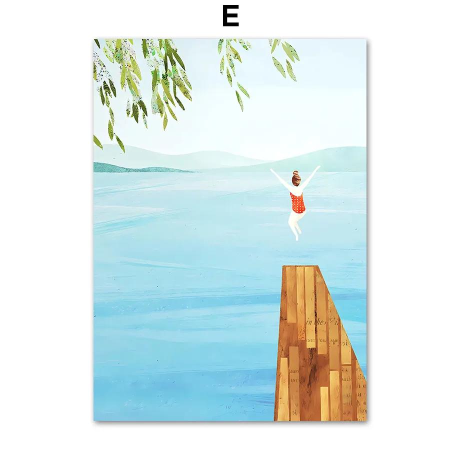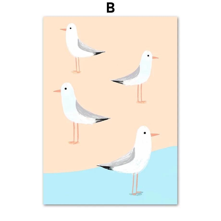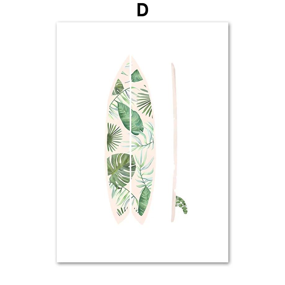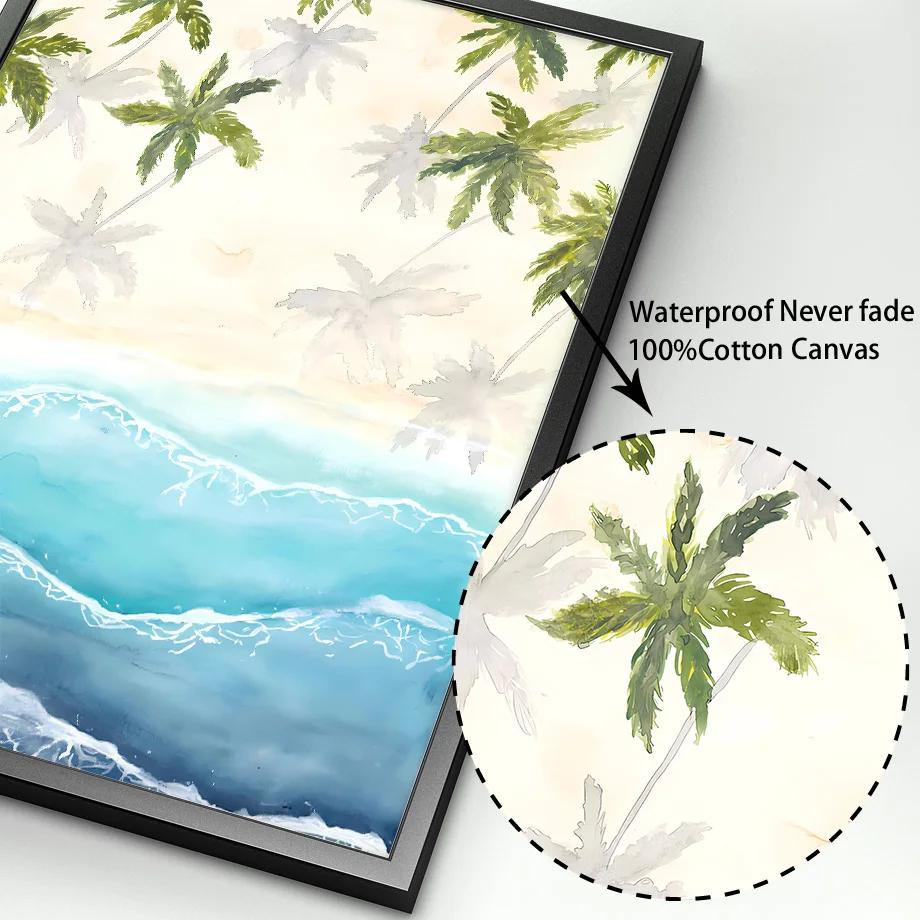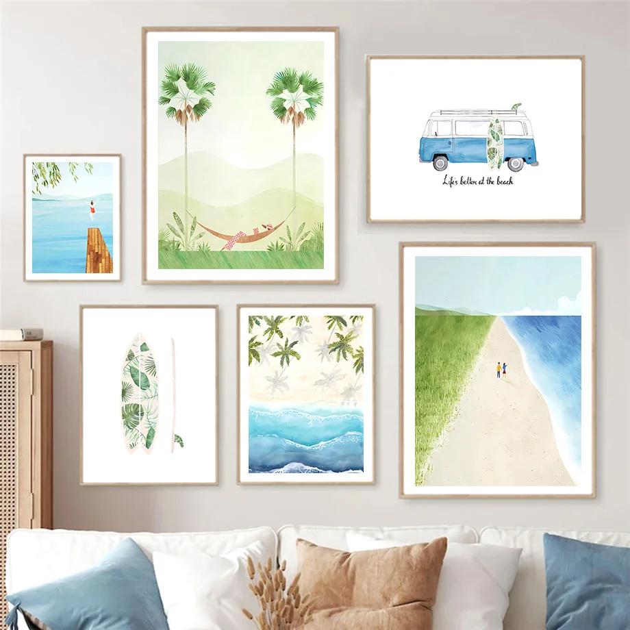 Океан Пляж Пальма Доска для серфинга Чайка Настенная живопись Фреска Холст Картина Путешествия Плакаты и принты Настенные картины Декор гостиной