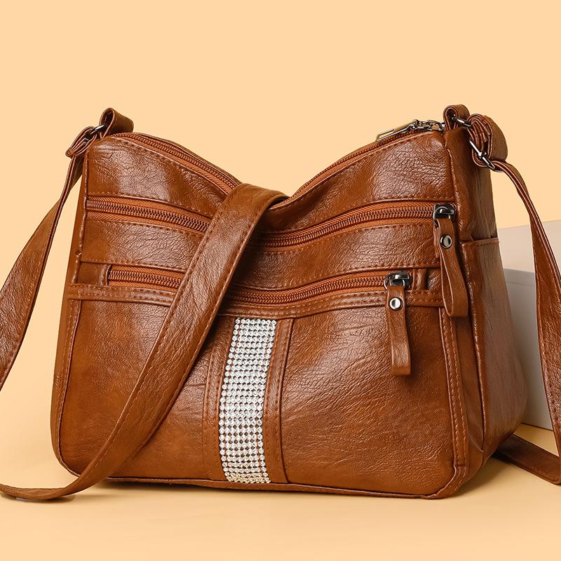 Сумка через плечо из мягкой кожи, сумка на плечо в стиле ретро, простая модная сумка большой вместимости с несколькими карманами для женщин