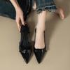 Летние французские винно-красные лакированные босоножки из лакированной кожи на среднем каблуке для женщин с заостренным носком на каблуке в стиле ретро с пустыми носами