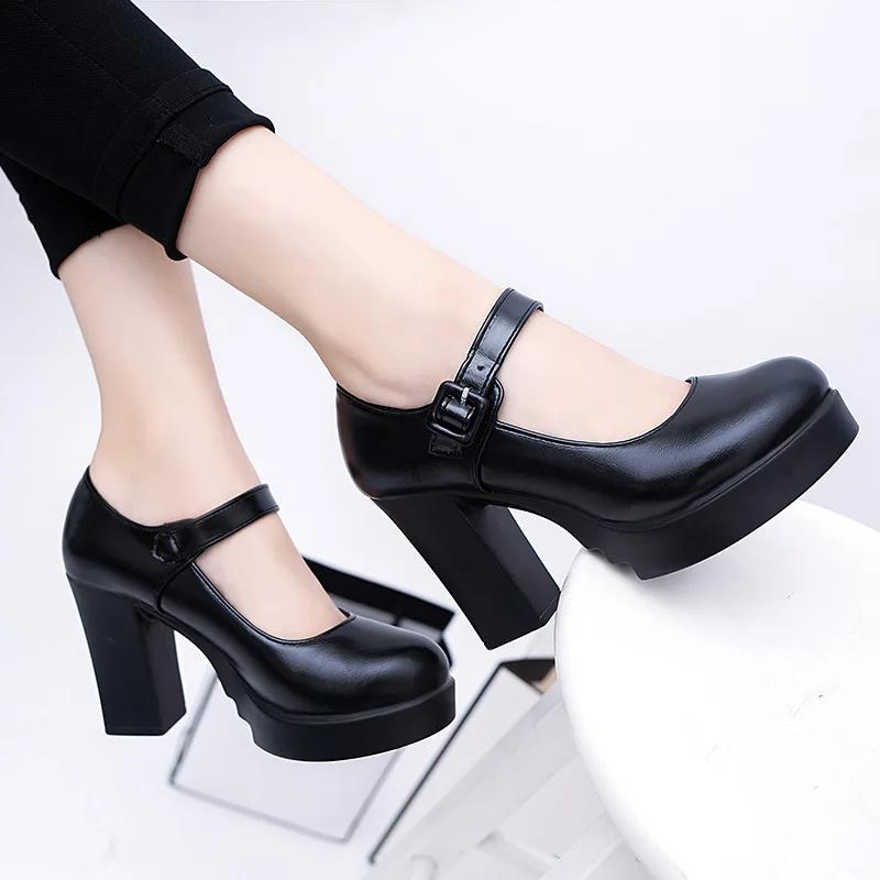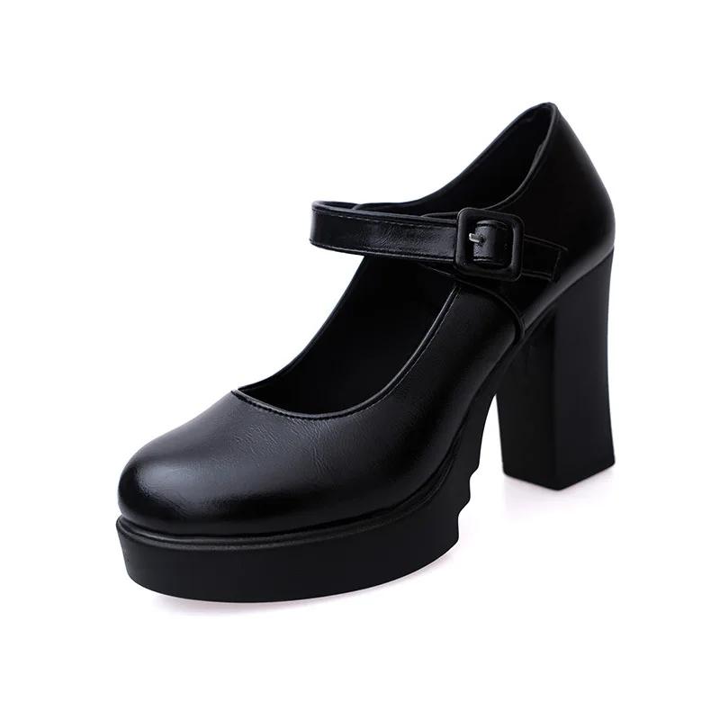 Уличная женская обувь на платформе однотонная новая весенне-летняя с неглубоким вырезом, с пряжкой, с круглым носком для женщин
