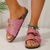 Летняя мода розовые бриллианты однотонные круглые носки для взрослых сексуальные женские сандалии большого размера повседневные туфли на плоской подошве удобные тапочки