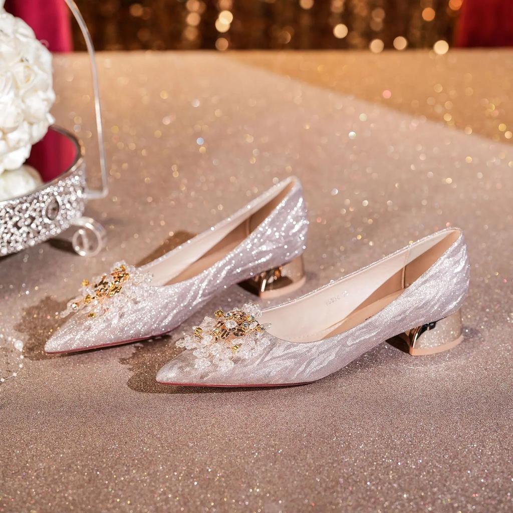 Осенняя мода женская банкетная свадебная обувь мелкие блестки стразы цветы удобные туфли на низком каблуке для женщин