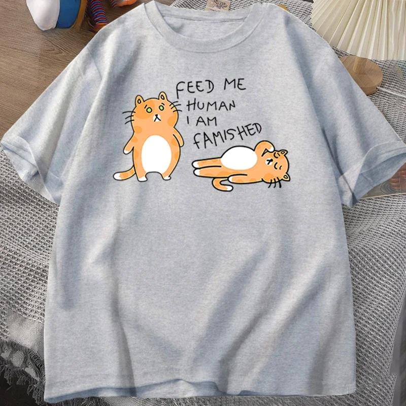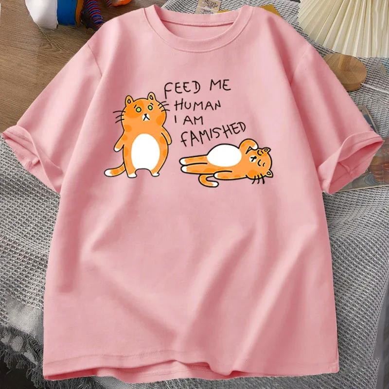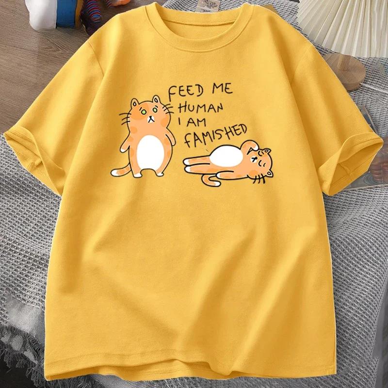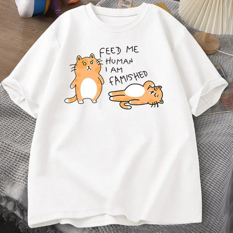 2025 Новые футболки женские Футболка с милым принтом Fuuny Cat Летние женские футболки Повседневная женская одежда Harajuku Футболки