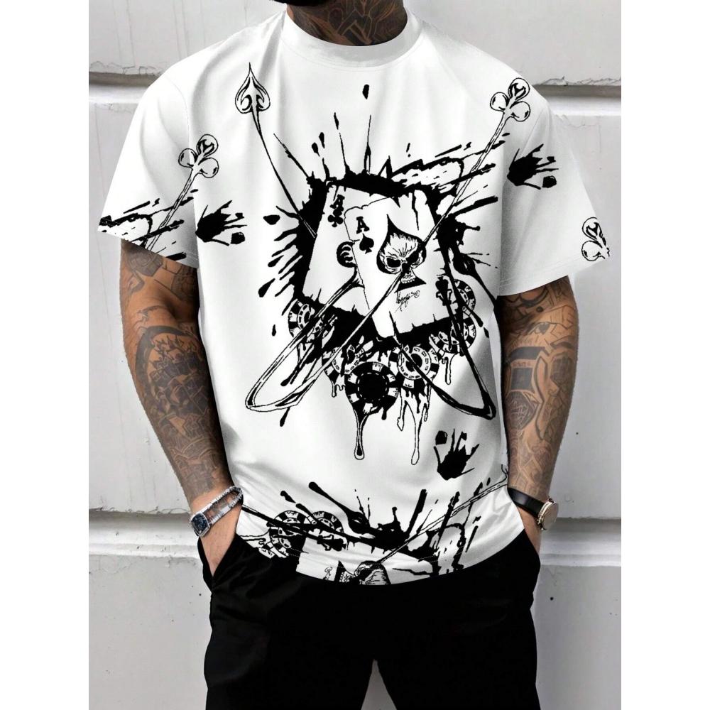 2025 3D Poker Printing Мужская футболка для фитнеса Urban Fashion Мужская футболка с короткими рукавами Летняя повседневная мужская футболка с короткими рукавами