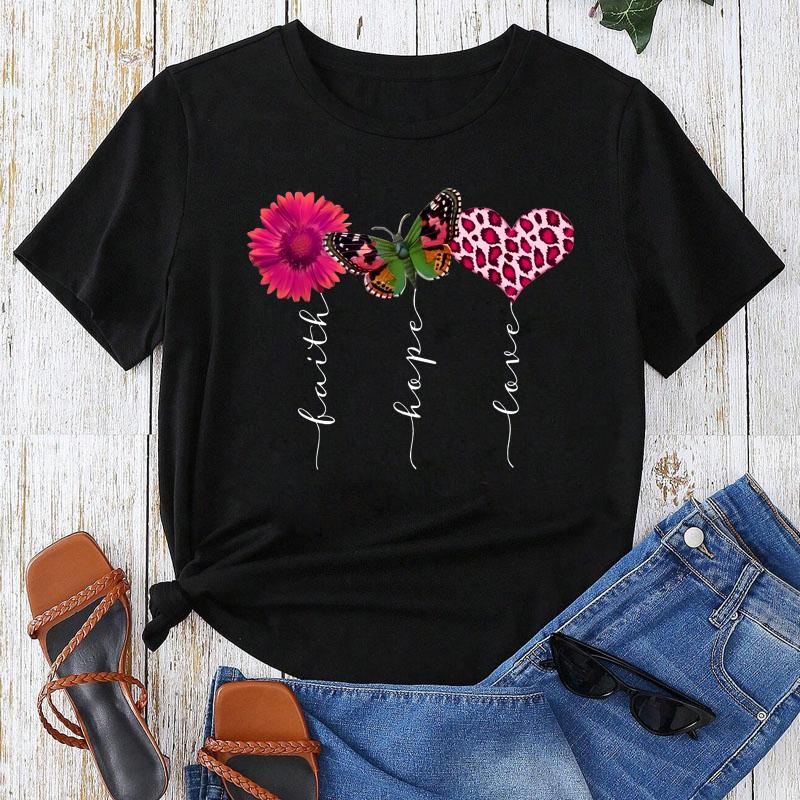 Бабочка Подсолнух Стиль Тренд Женская Одежда Модная Графическая Футболка Летняя Повседневная Короткий Рукав Женские Базовые Футболки Топы