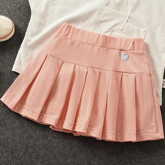 Универсальные плиссированные брюки-кюлоты для девочек, летняя юбка для детей среднего и маленького размера с внутренними защитными брюками, юбки для школьной формы