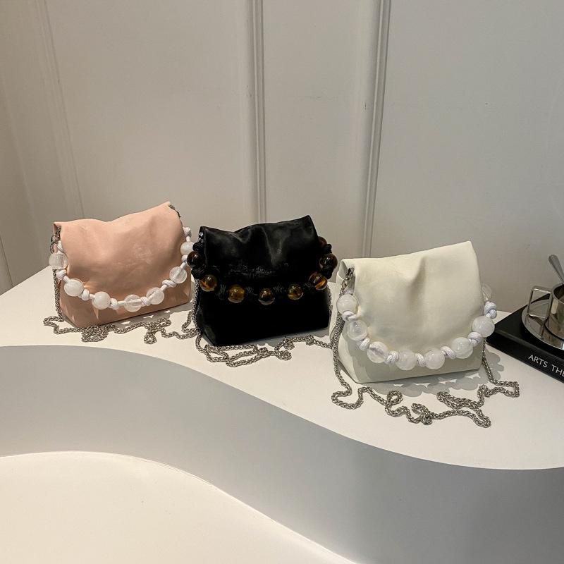 Новая плиссированная сумка-облако в китайском стиле для женщин, новая модная однотонная сумка через плечо на одно плечо, сумка-ведро с бисером в китайском стиле