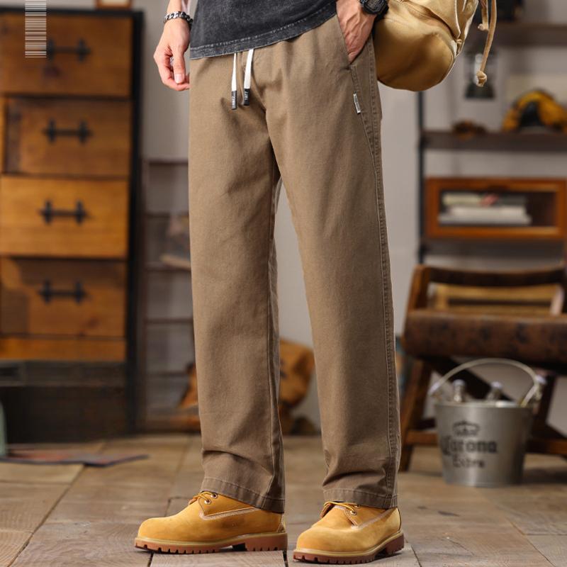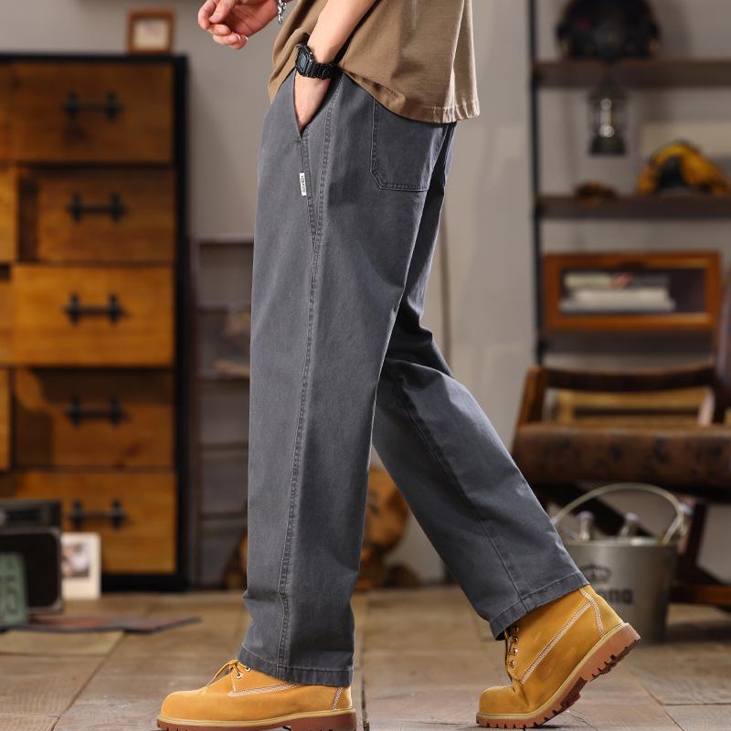 Повседневные брюки из чистого хлопка для мужчин на весну, осень и зиму Новый стиль Зауженная версия Драпировка Удлиненные до пола Прямые Универсальные брюки для мужчин