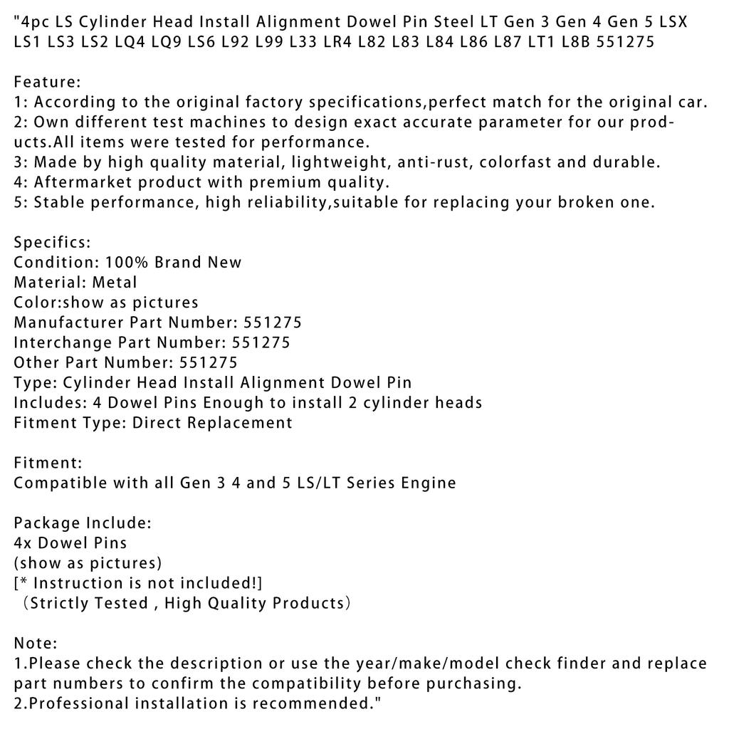 4 шт. LS головка блока цилиндров установка выравнивающий штифт сталь LT Gen 3 Gen 4 Gen 5 LSX