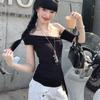 Летняя футболка с открытыми плечами и косым воротником Женская мода Футболки с коротким рукавом повседневные Тонкие эластичные обтягивающие топы y2k женская одежда