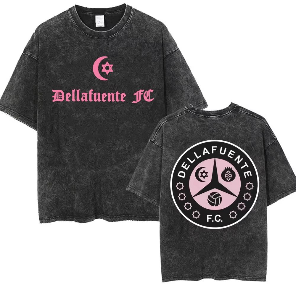Рэпер Деллафуэнте Винтажная стираная футболка для мужчин и женщин Летняя уличная свободная повседневная хлопковая футболка с коротким рукавом