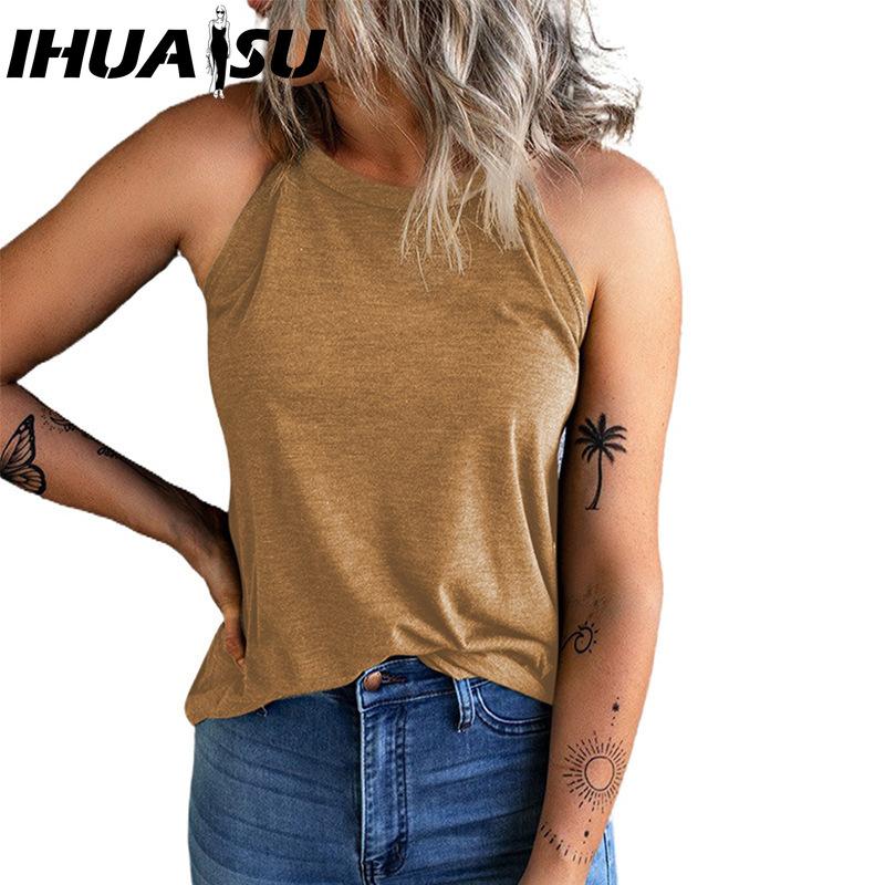 IHUASU Летний жилет с лямкой на шее, женская однотонная облегающая блузка без рукавов с круглым вырезом, женская