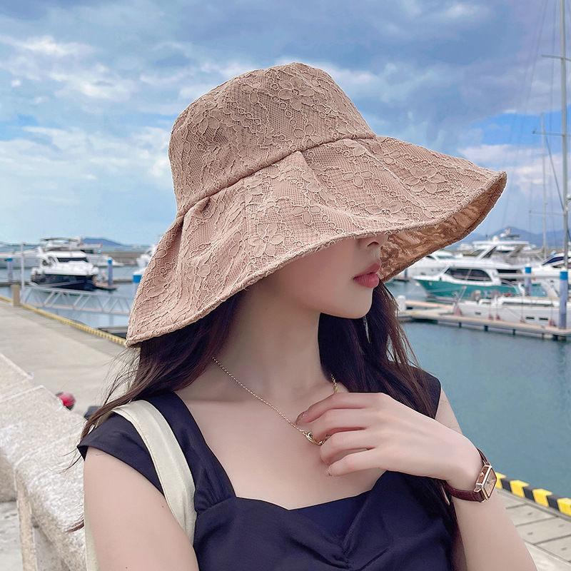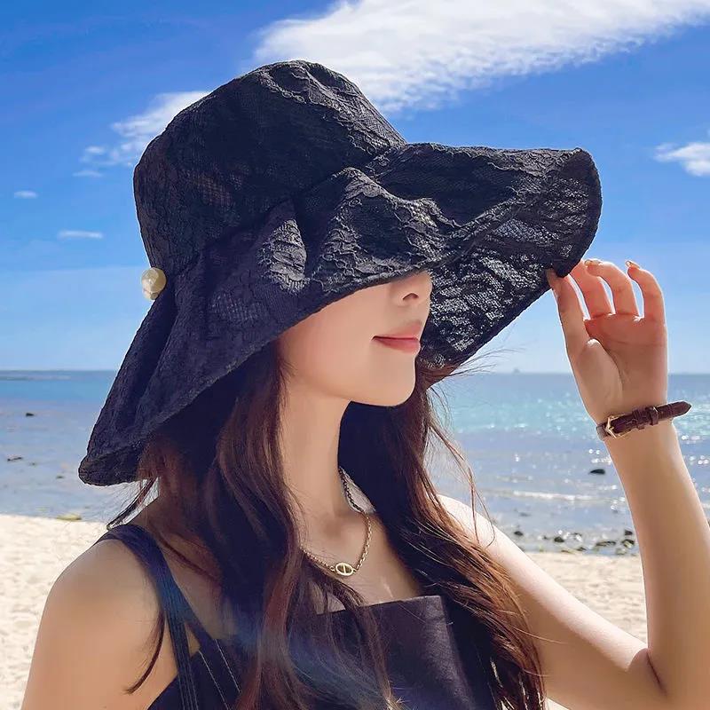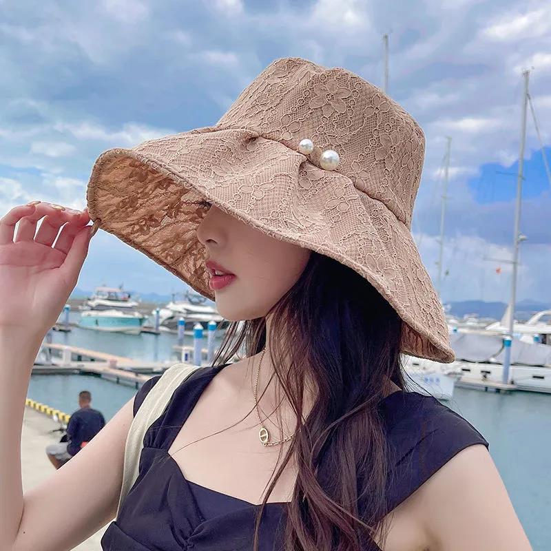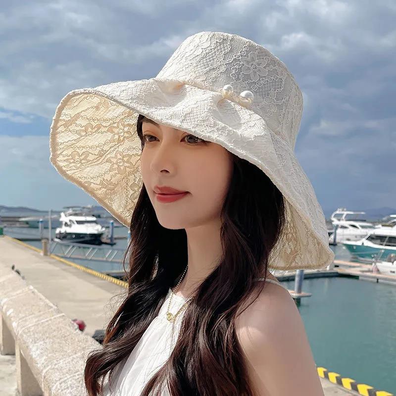 Рыбацкая шляпа женская весна и лето с жемчужными кружевами и цветами УФ-защитная шляпа от солнца Шляпа от солнца